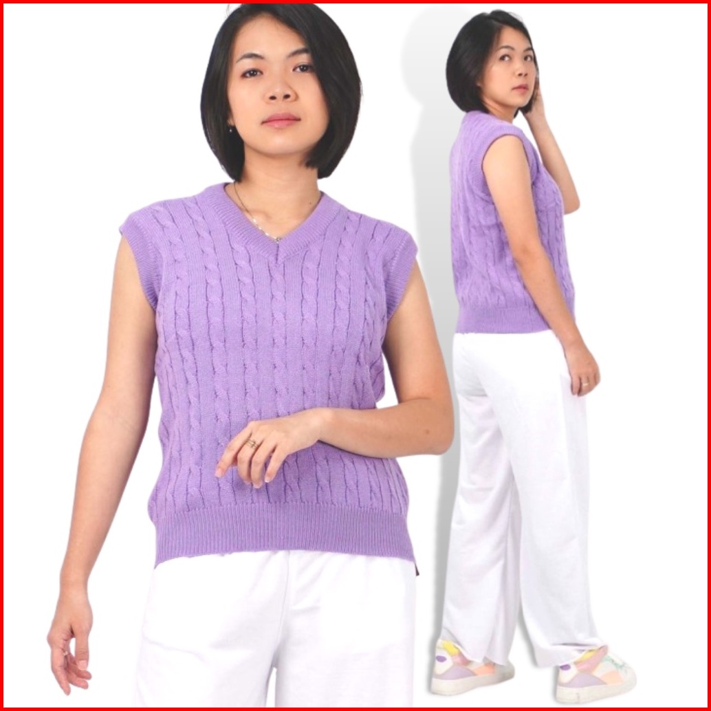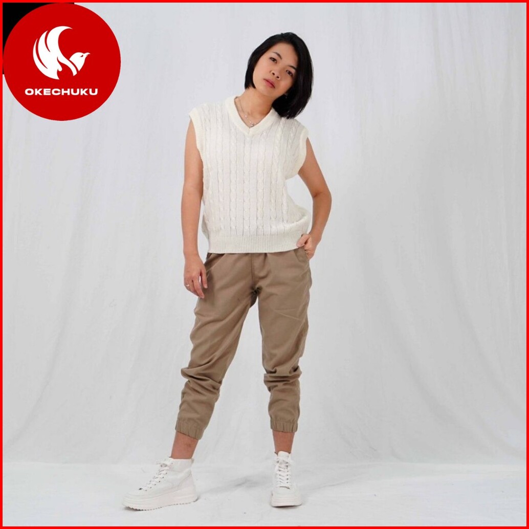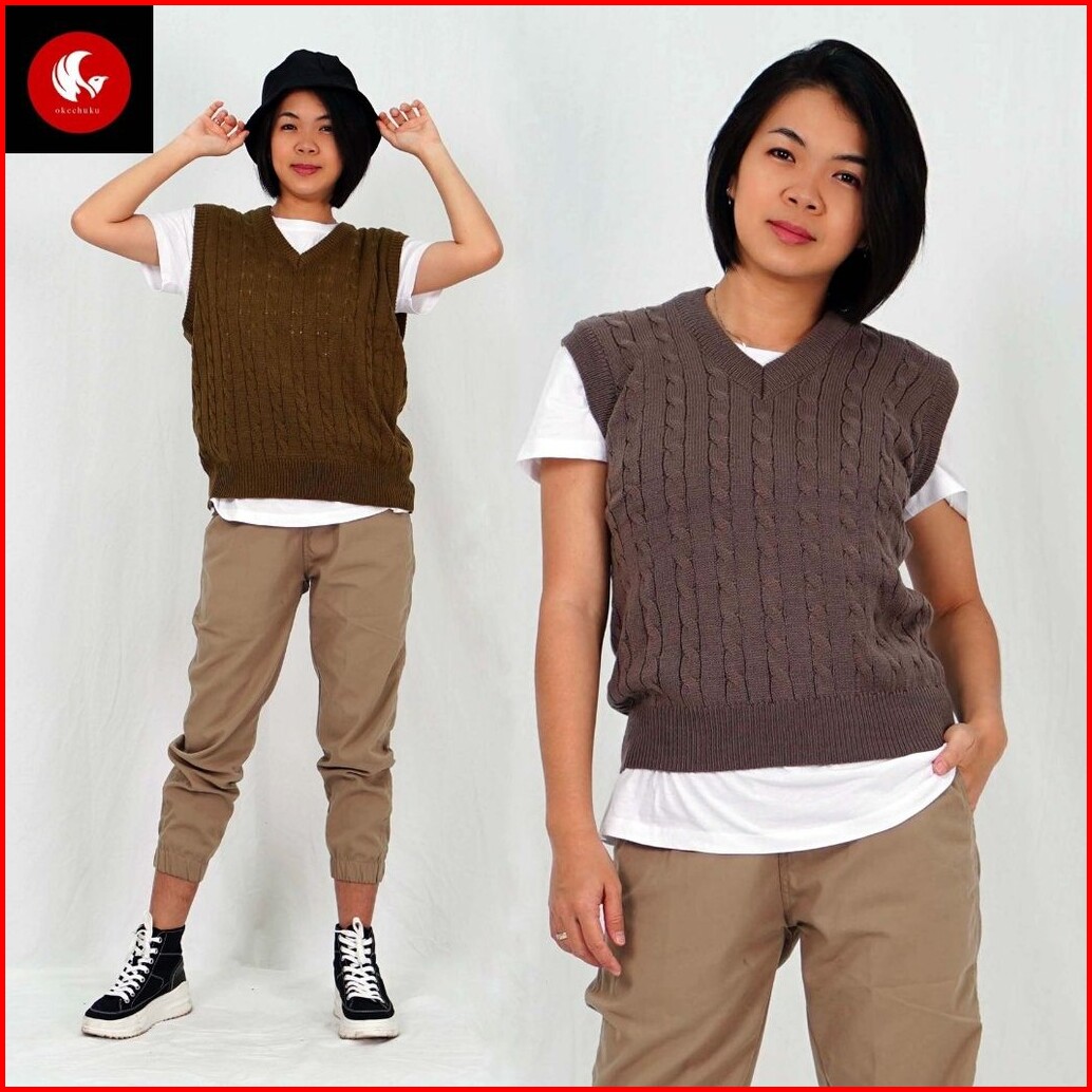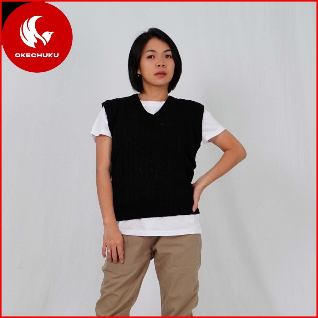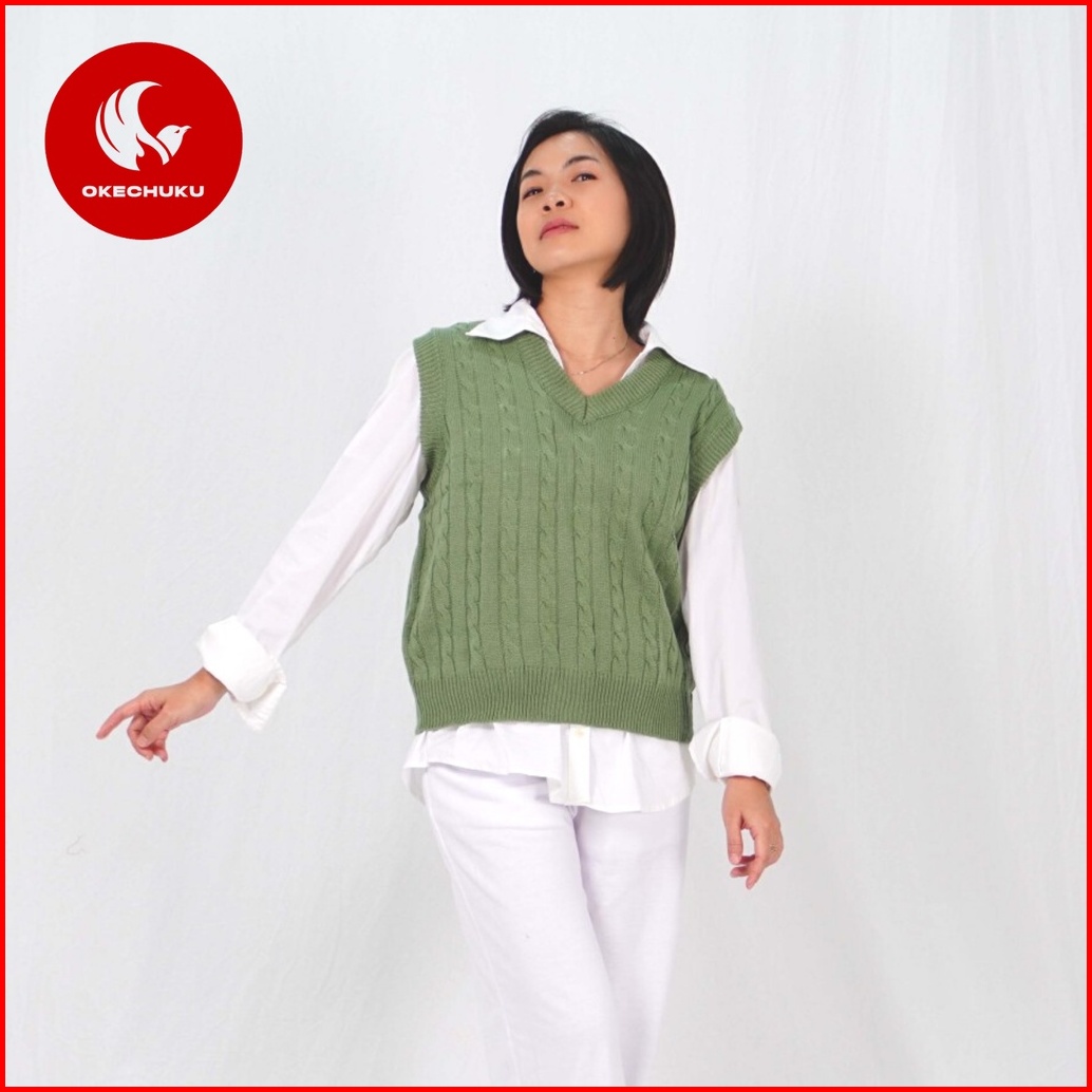 Okechuku Cable Rompi Wanita Vest Cable Outer Rajut Wanita Korean Style