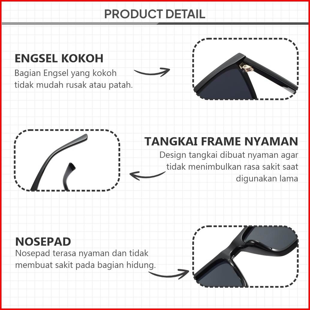 Berrybarton - Kacamata Hitam Segi Empat Tr90 Sunglasses Anti Uv400 Bb 808-1