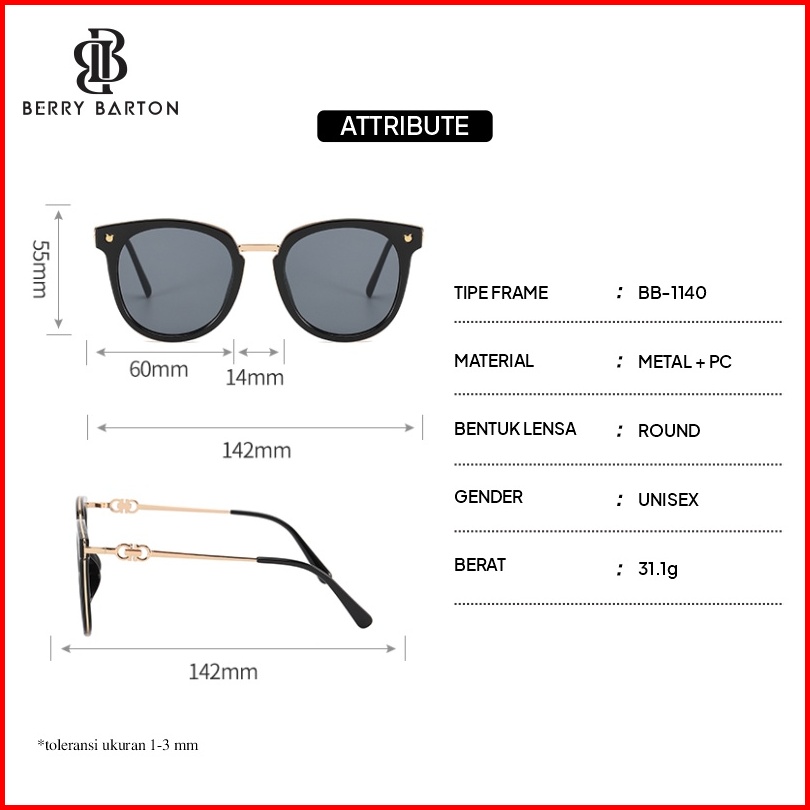 Berrybarton - Kacamata Sunglasses Round Metal Trendy Outdoor Sunglasses Anti Uv400 1140
