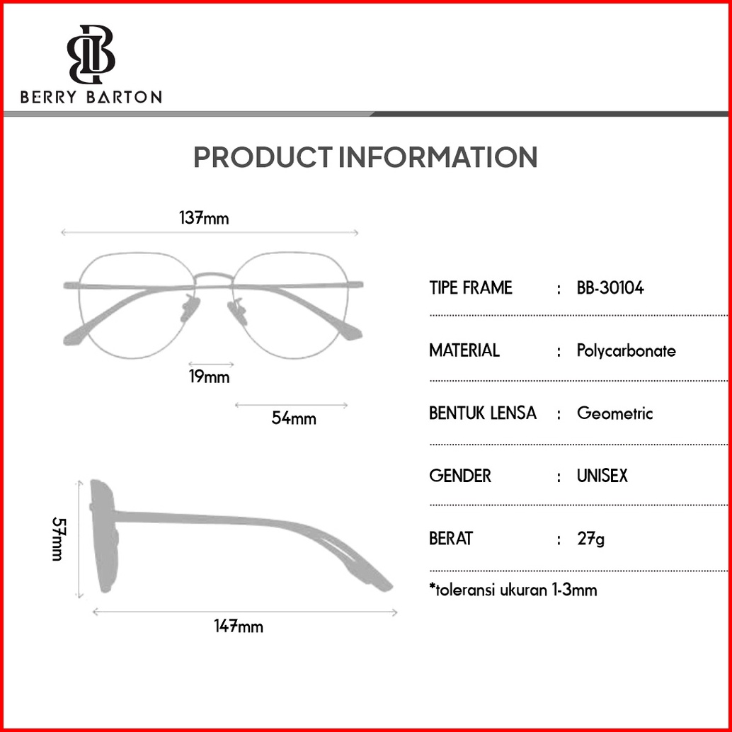 Sale Berrybarton Kacamata Hitam Fashion Style Bulat Pc Modern Sunglasses Anti Uv400 Wanita 30104
