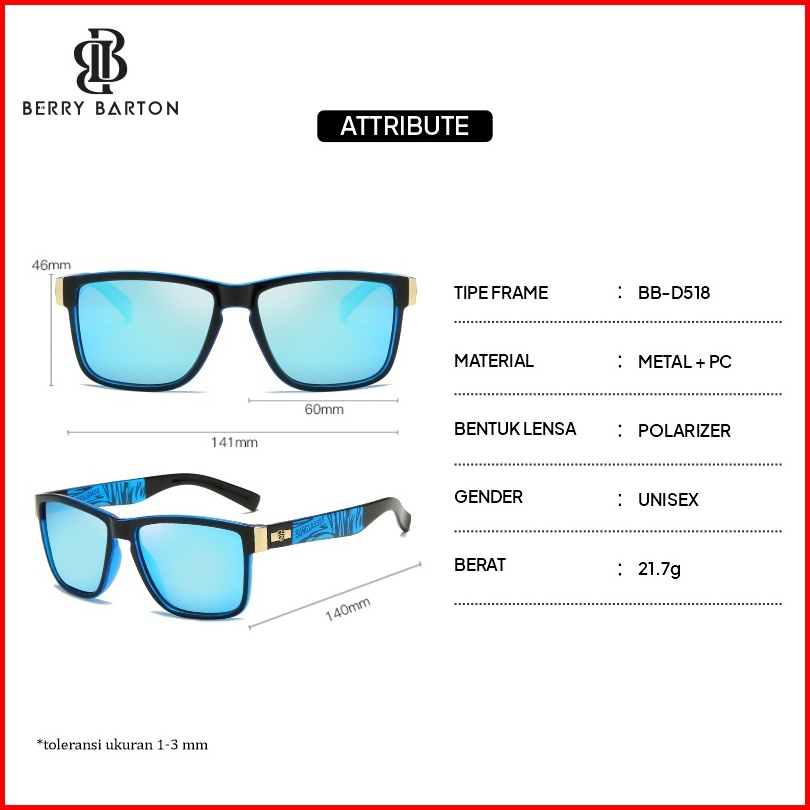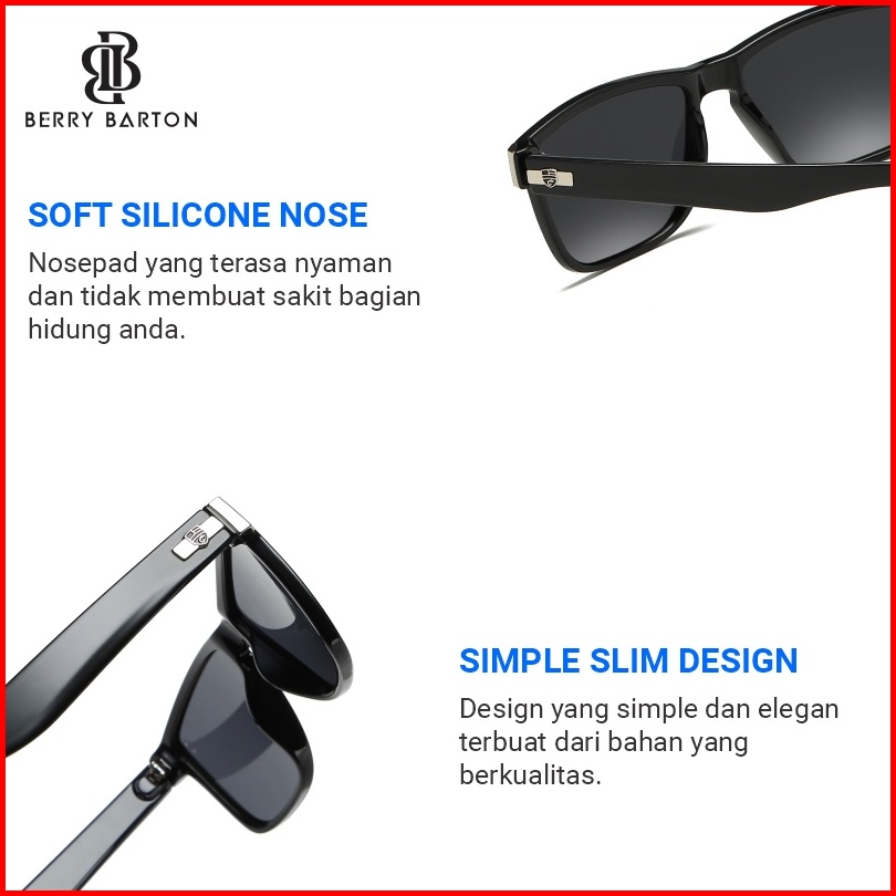 Berrybarton Kacamata Hitam Olahraga Lari Bersepeda Polarized Sunglasses Segi Empat Outdoor Anti Silau Pria Wanita 63795