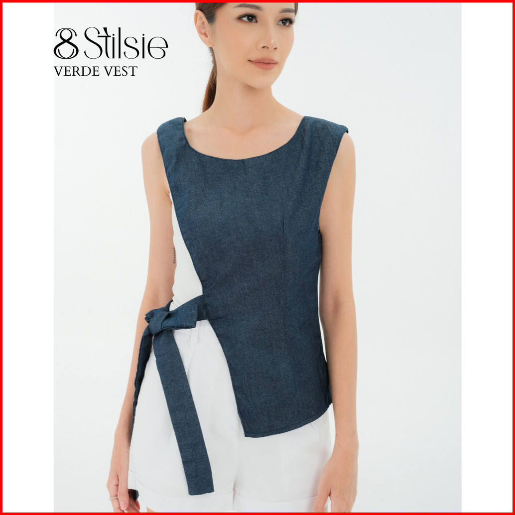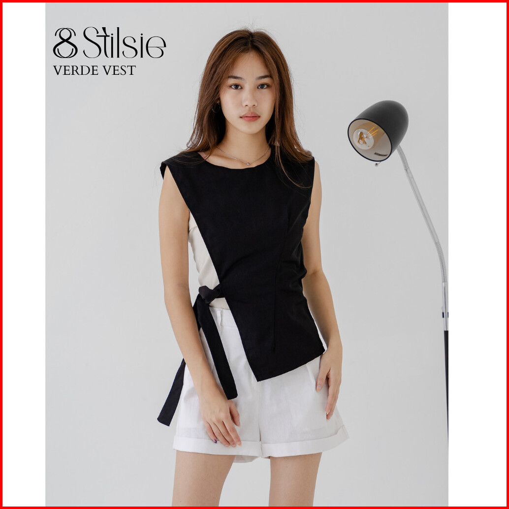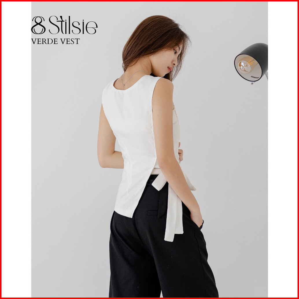 Stilsie Verde Vest Vest Wanita Rompi Wanita Outer Blazer Tanpa Lengan Katun Cutting Unik