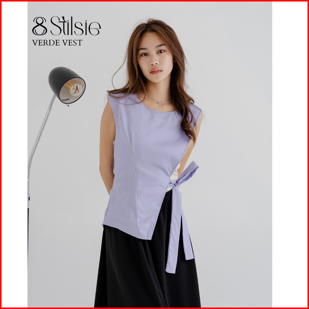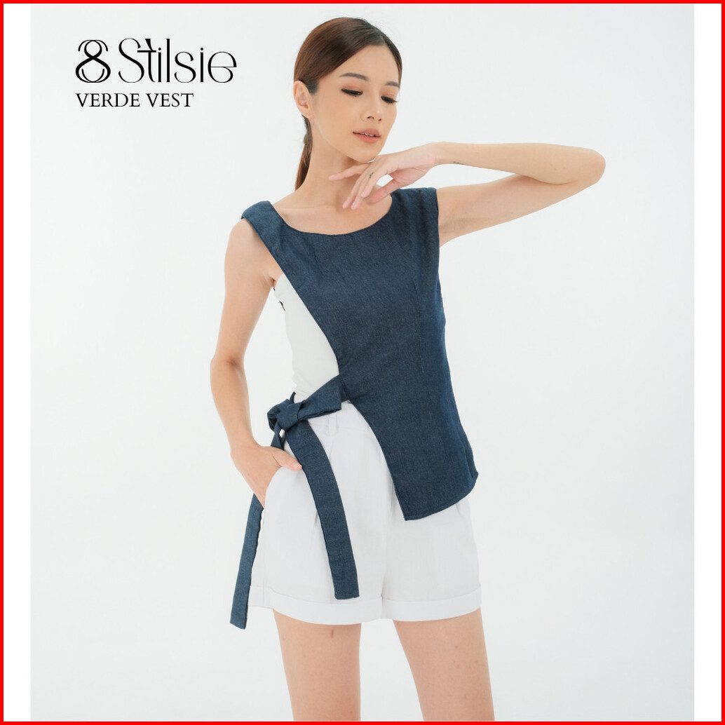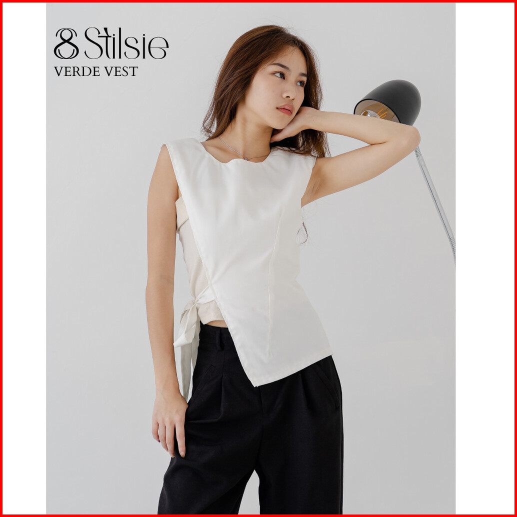 Stilsie Verde Vest Vest Wanita Rompi Wanita Outer Blazer Tanpa Lengan Katun Cutting Unik