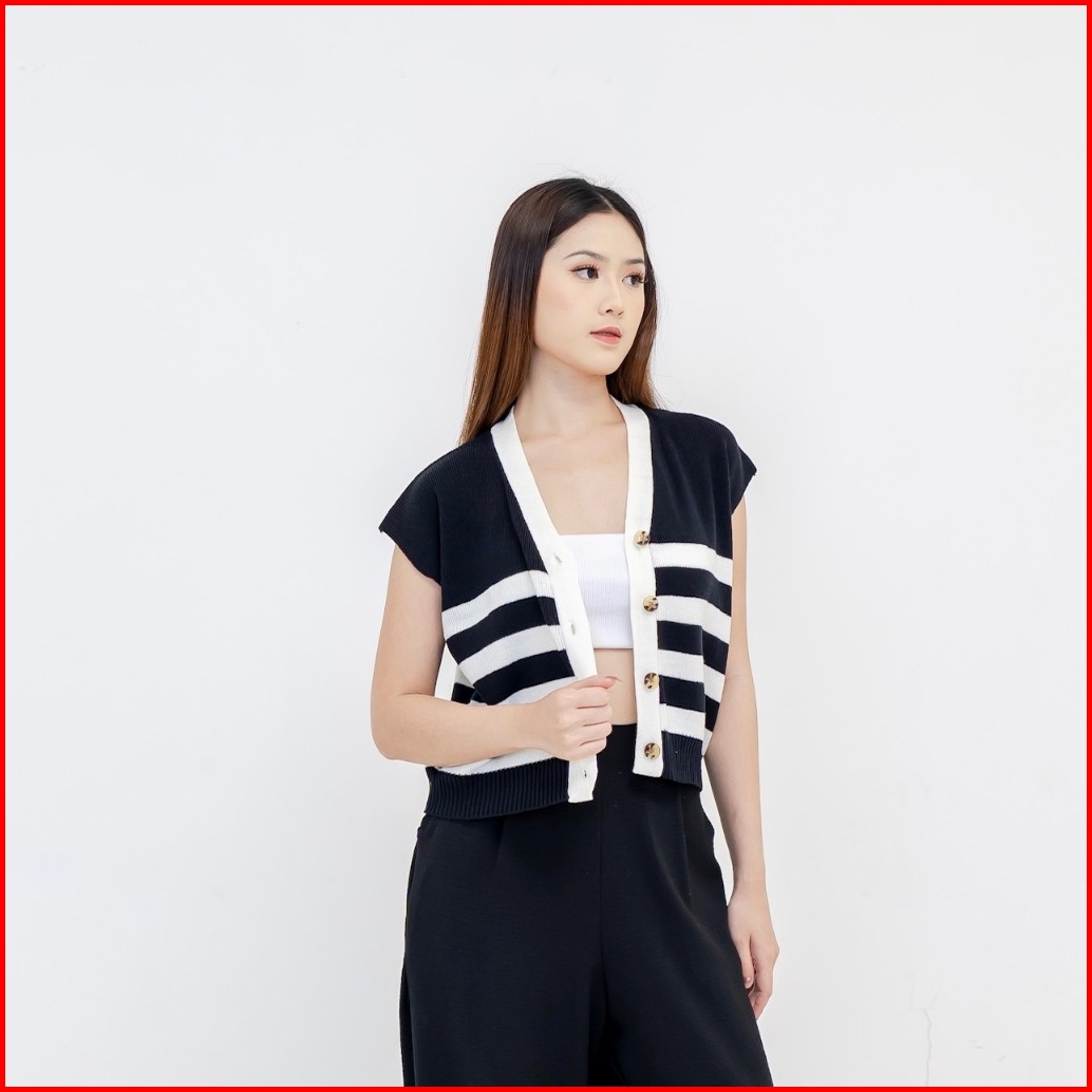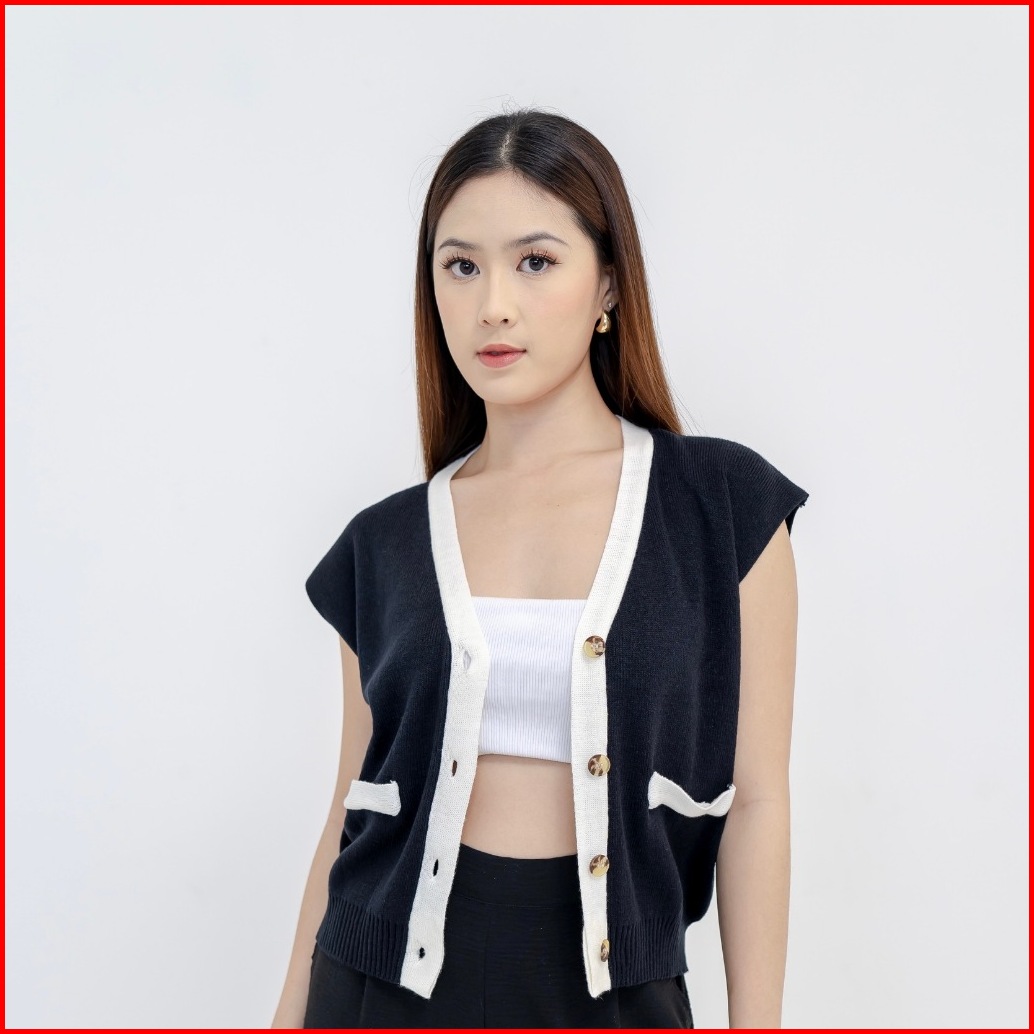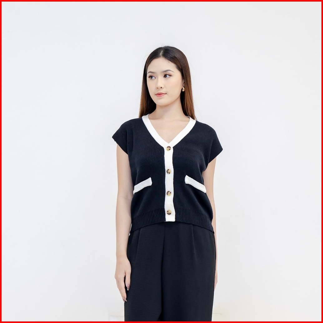 Georgios Women Vany Vest Vest Knitted Atasan Wanita Kekinian