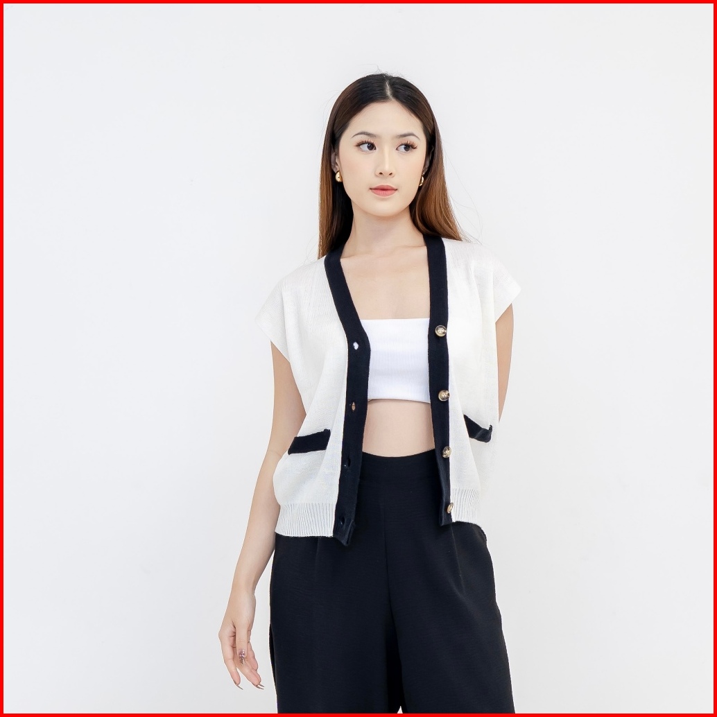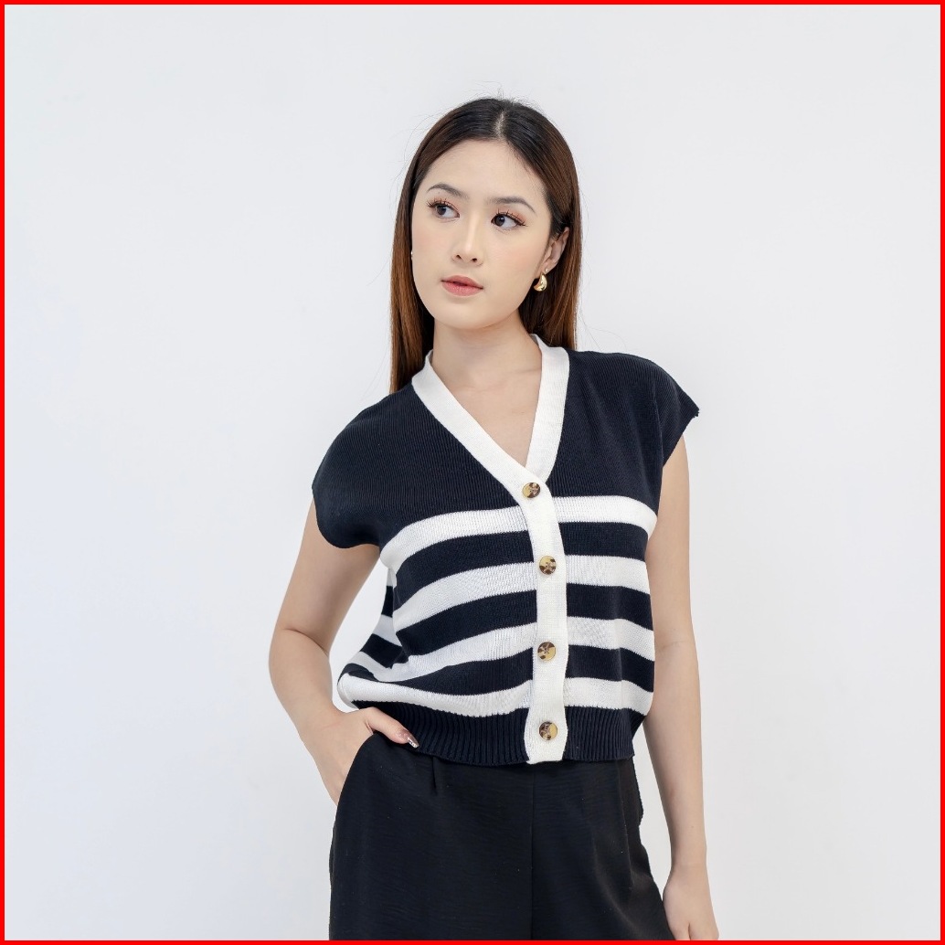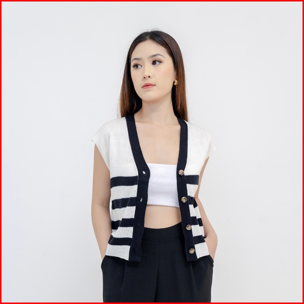 Georgios Women Vany Vest Vest Knitted Atasan Wanita Kekinian