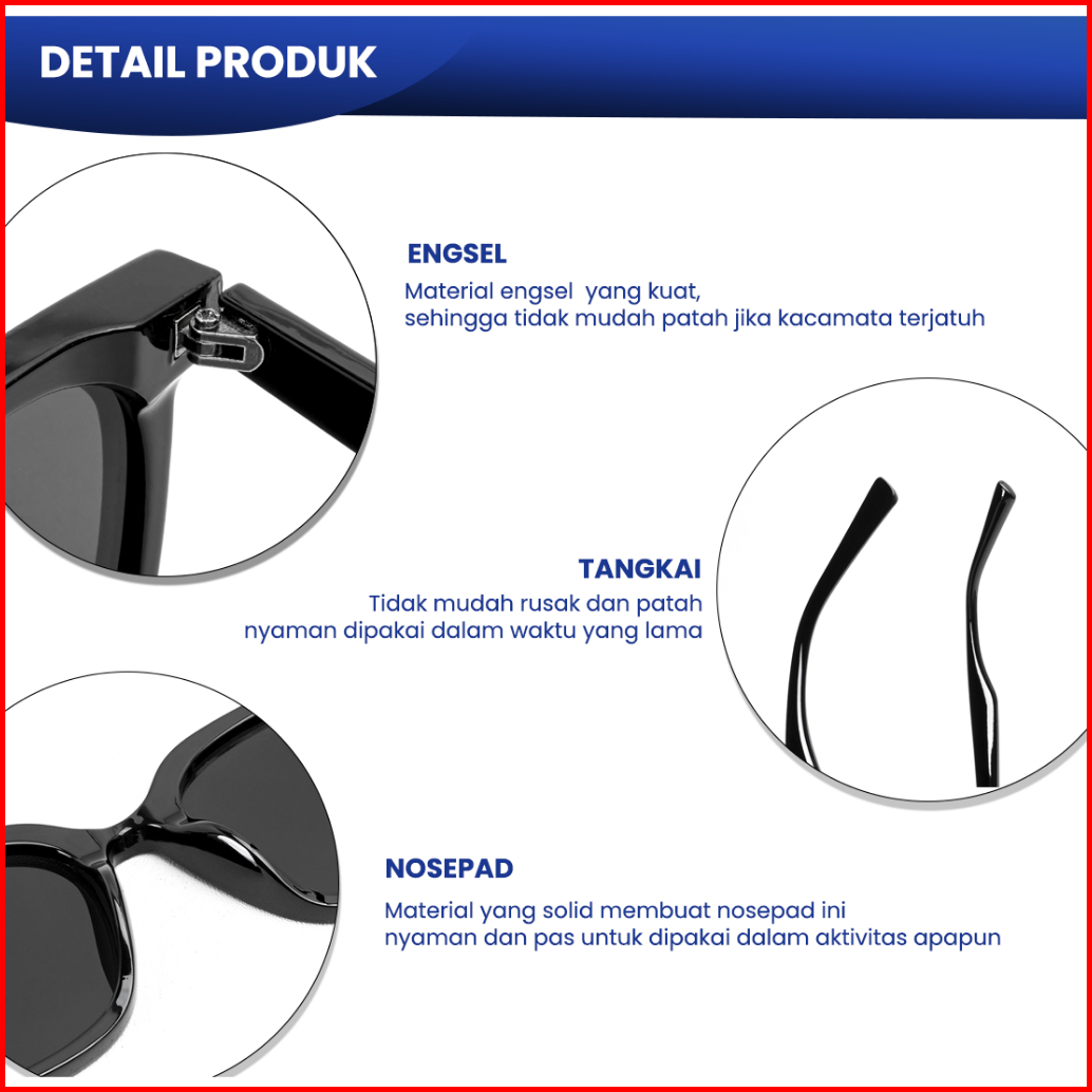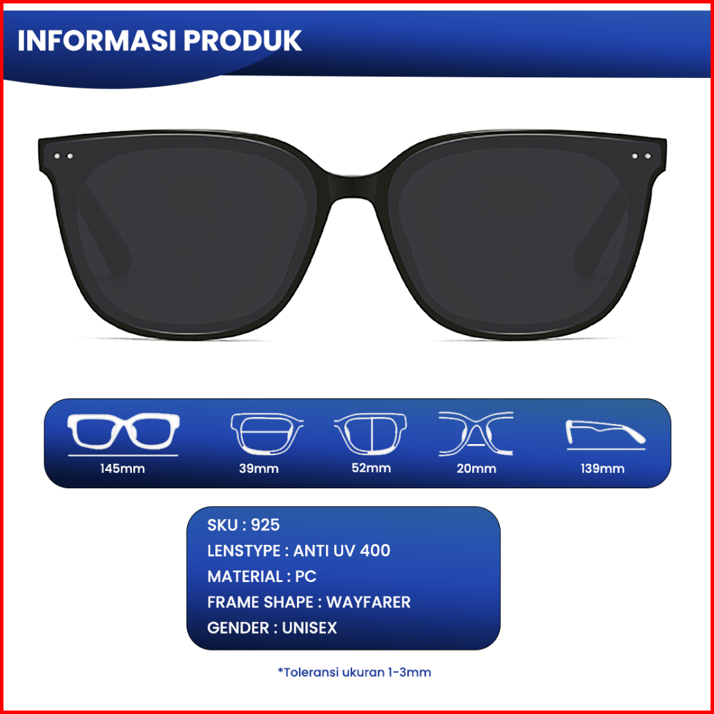 Iooi Eyewear - Kacamata Hitam Kotak Premium Sunglasses Anti Uv400 Pria Wanita 925