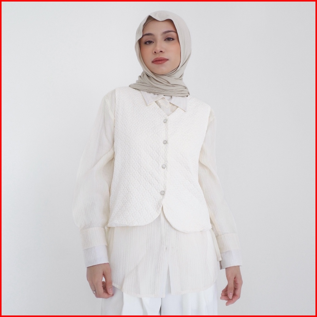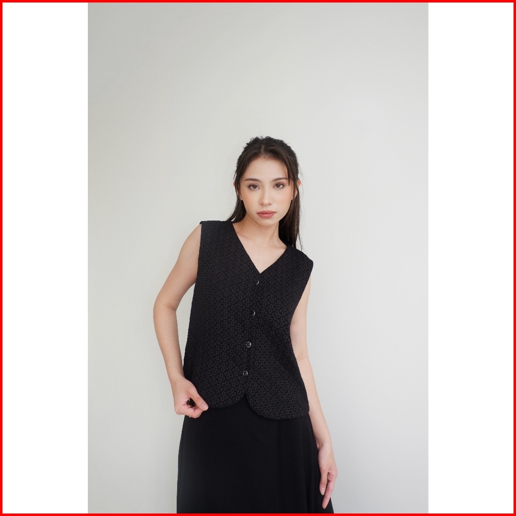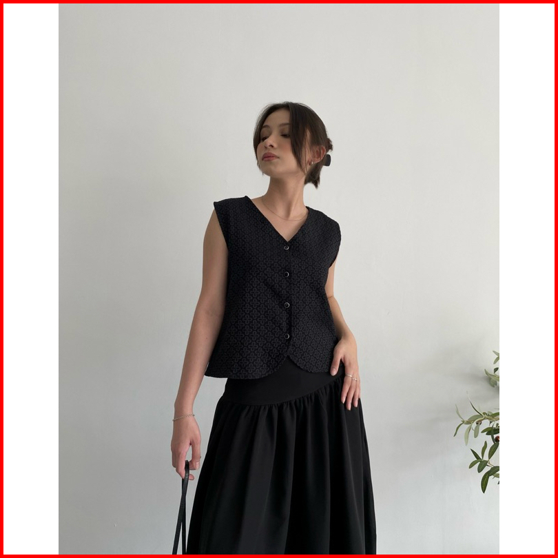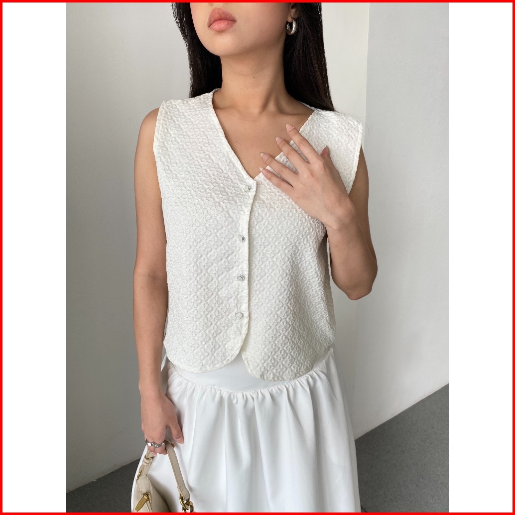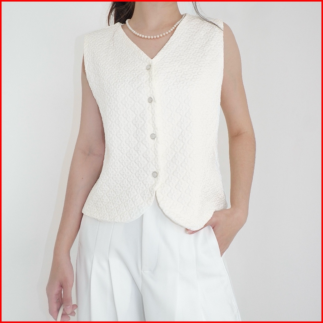 Gracias Label - Kaia Top Textured - Vest Atasan Wanita - Rompi Sleeveless Top - V Neck - Classic