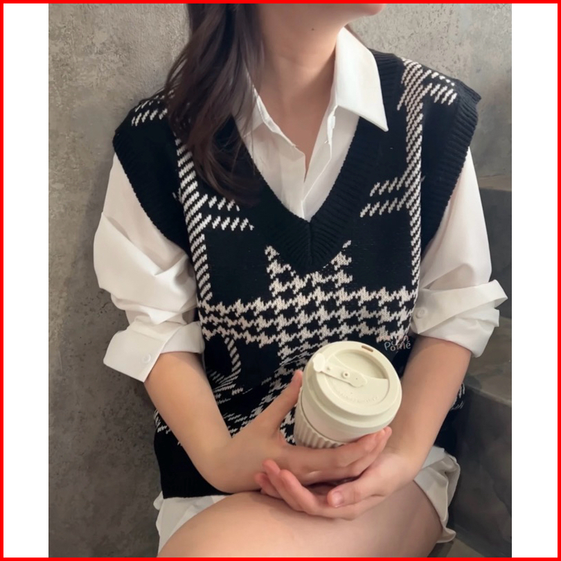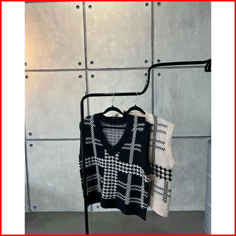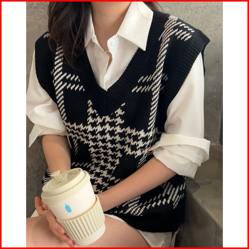Yeona Houndstooth Knit V Neck Vest