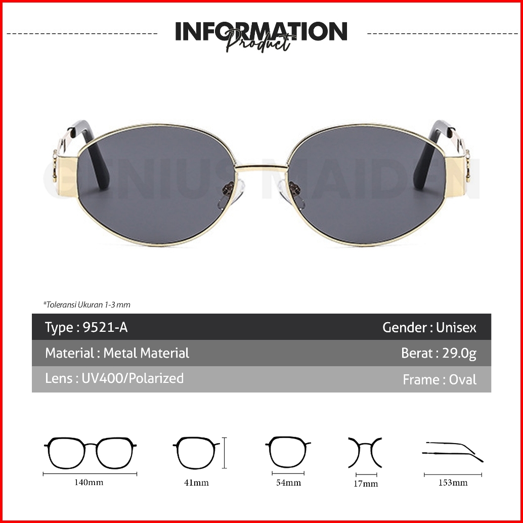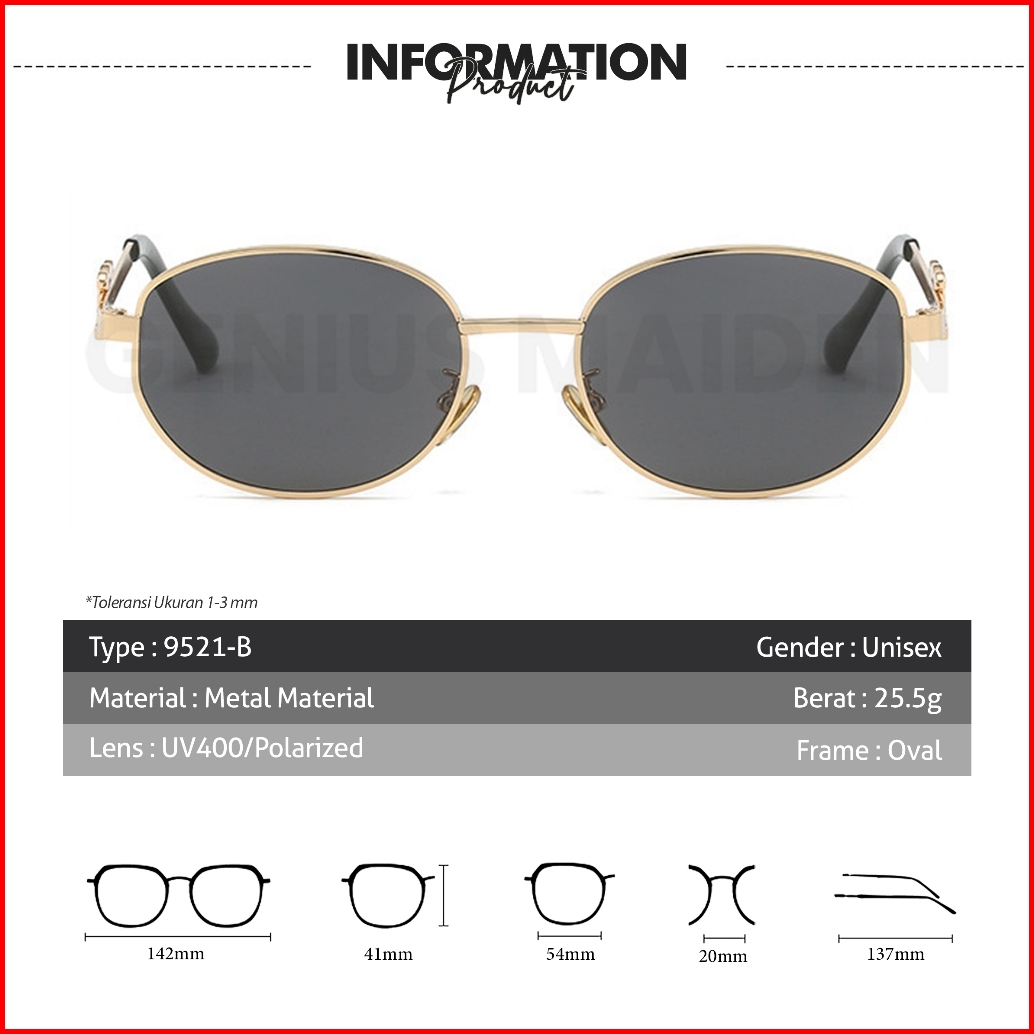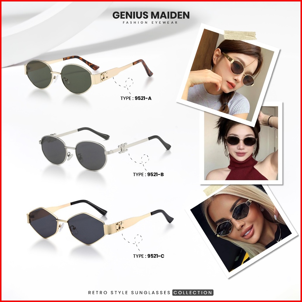 Genius Maiden Kacamata Hitam Sunglasses Oval Fashion Korea Retro Uv400 Polarized 9521 A B C