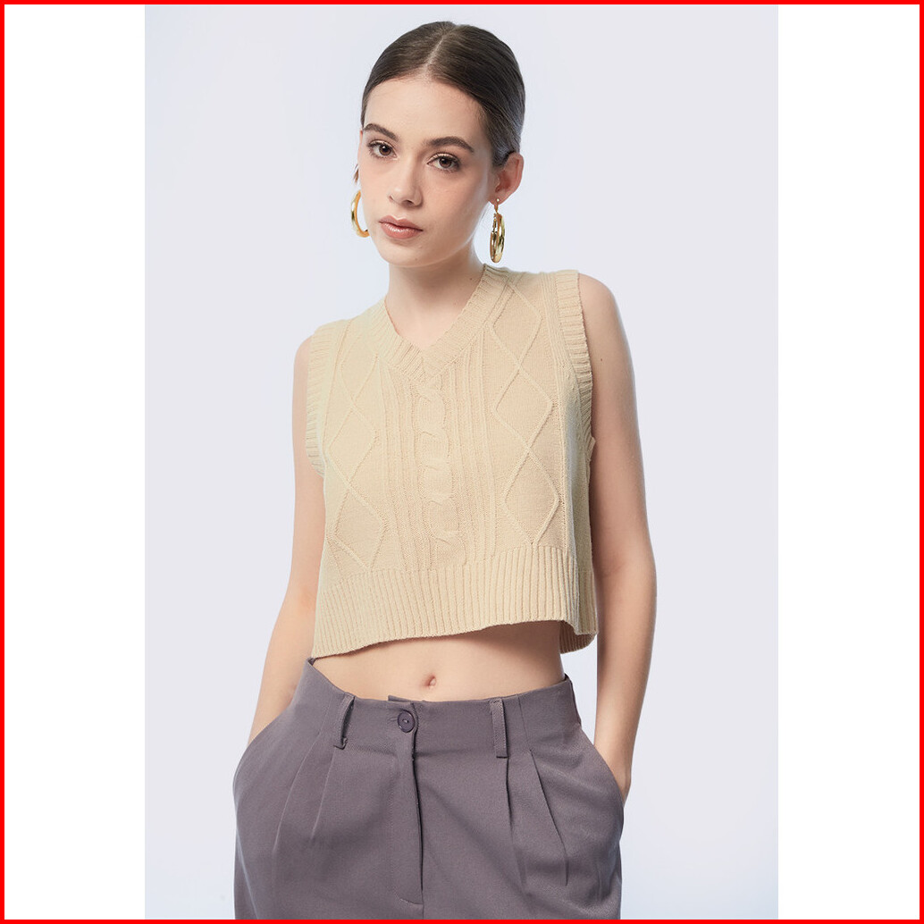 Colorbox Oversized Knit Vest Beige