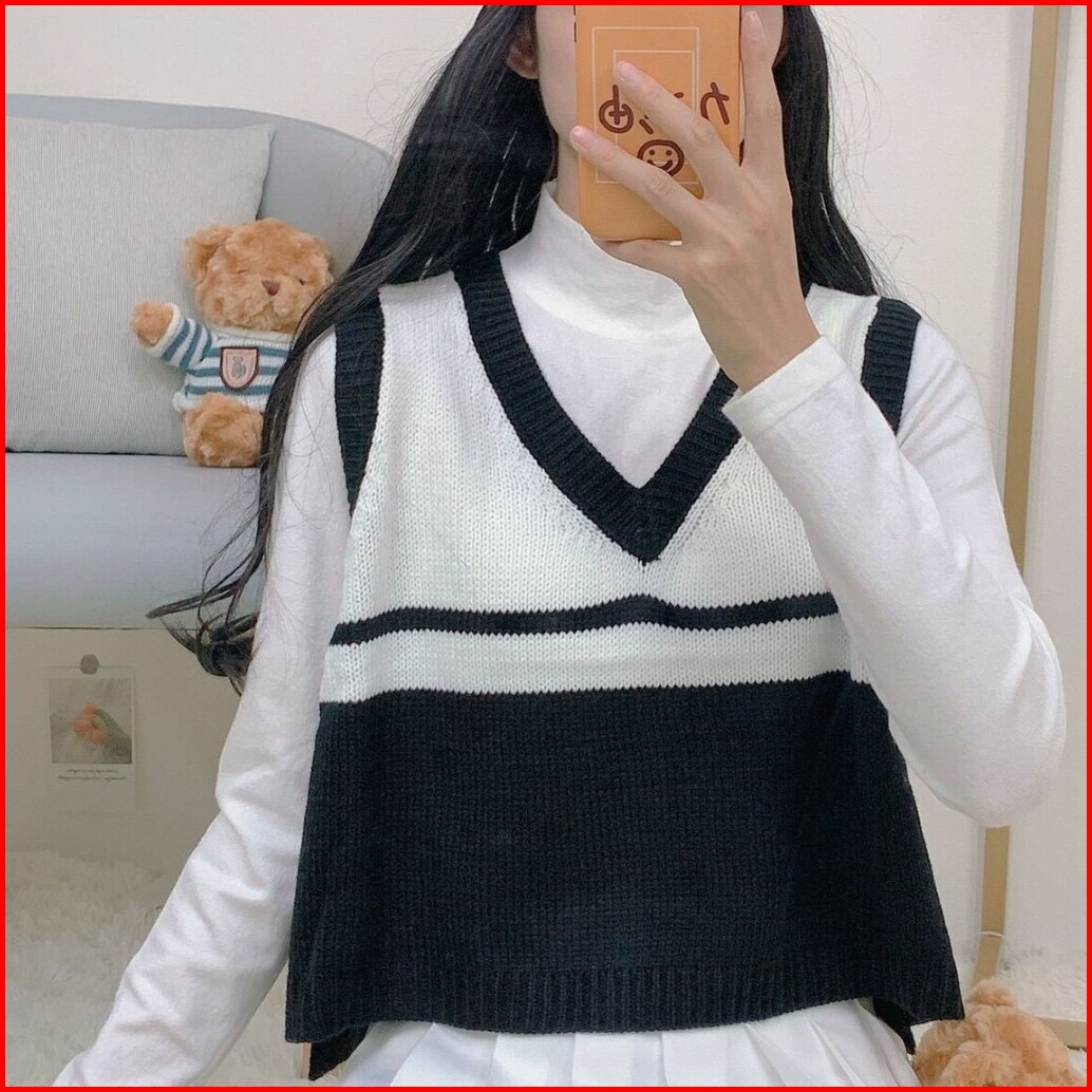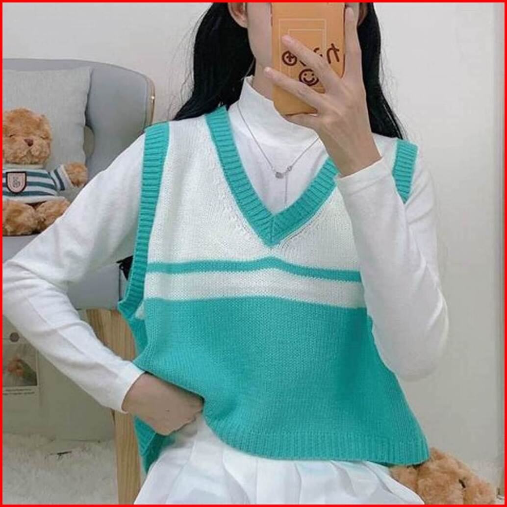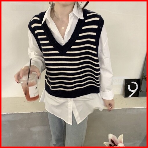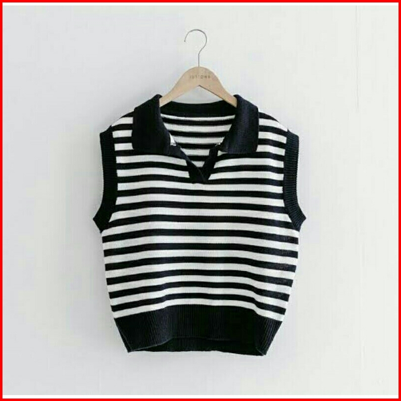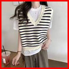 Atasan Top Vest Vest Korean Style Striped Vest V-neck Vest Garis