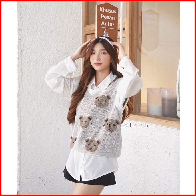 Suetercloth - Teddy Vest Knit Vest Gambar Teddy Vest Rajut Wanita