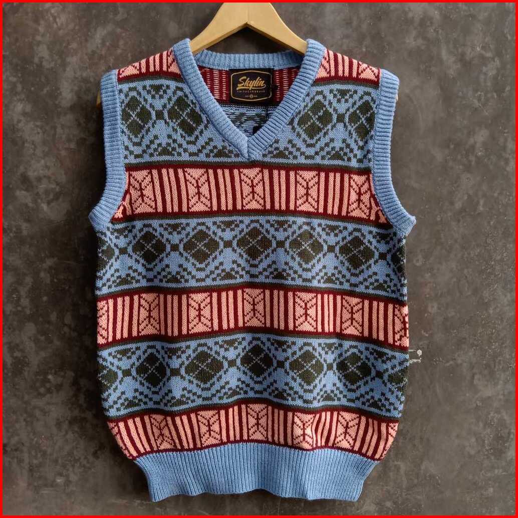 Vest Knit Motif Haecan Rompi Rajut Corak Blue Salmon