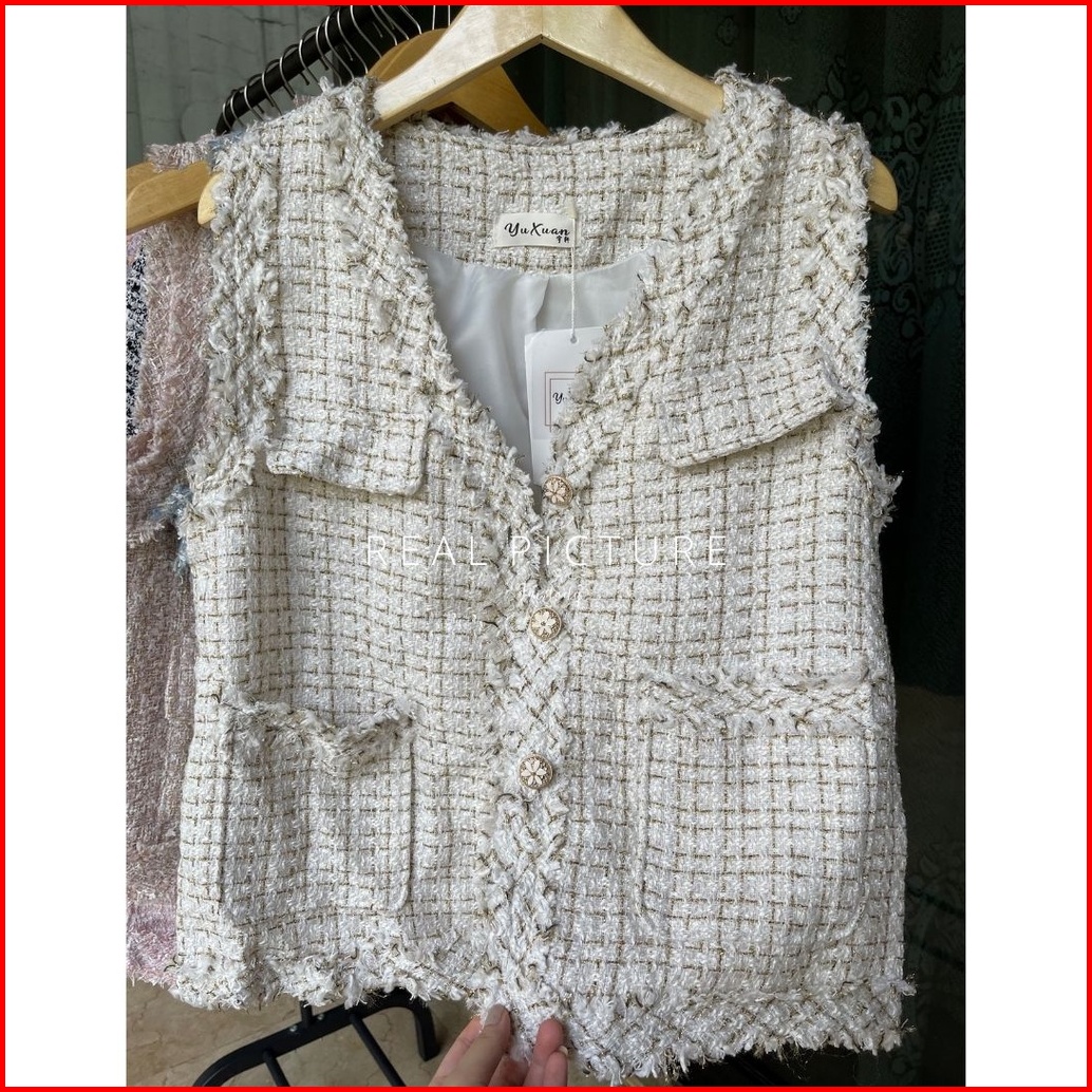 Ready Stock Ld 100 Shelby White Tweed Vest Rompi Korea Premium Fairlady Id C4