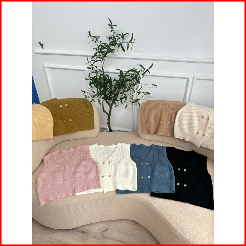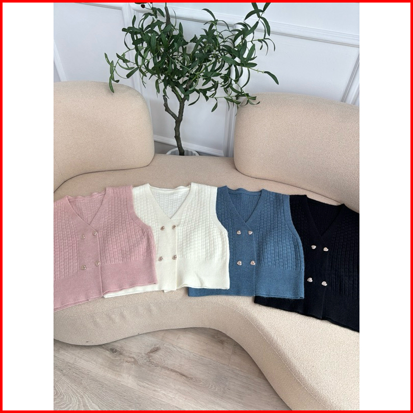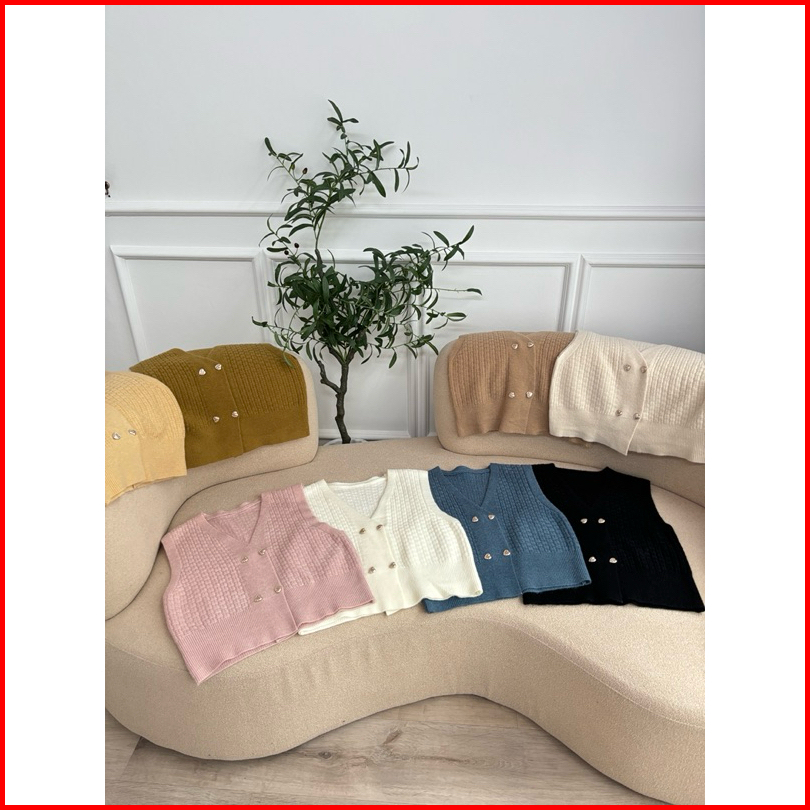 Alln Knitwear Ceva Vest Kancing Love Atasan Wanita