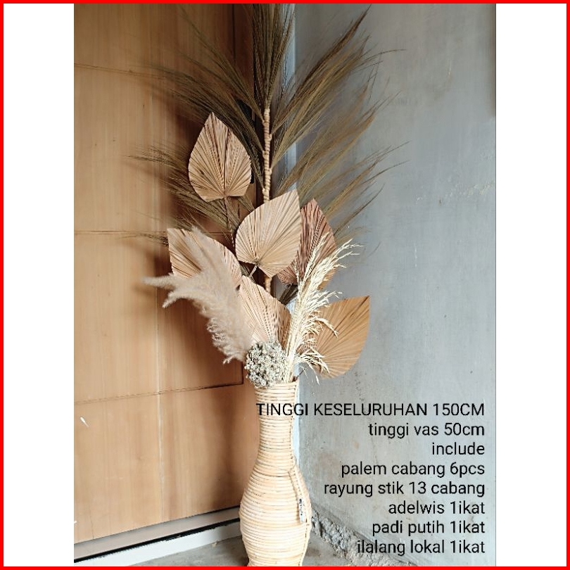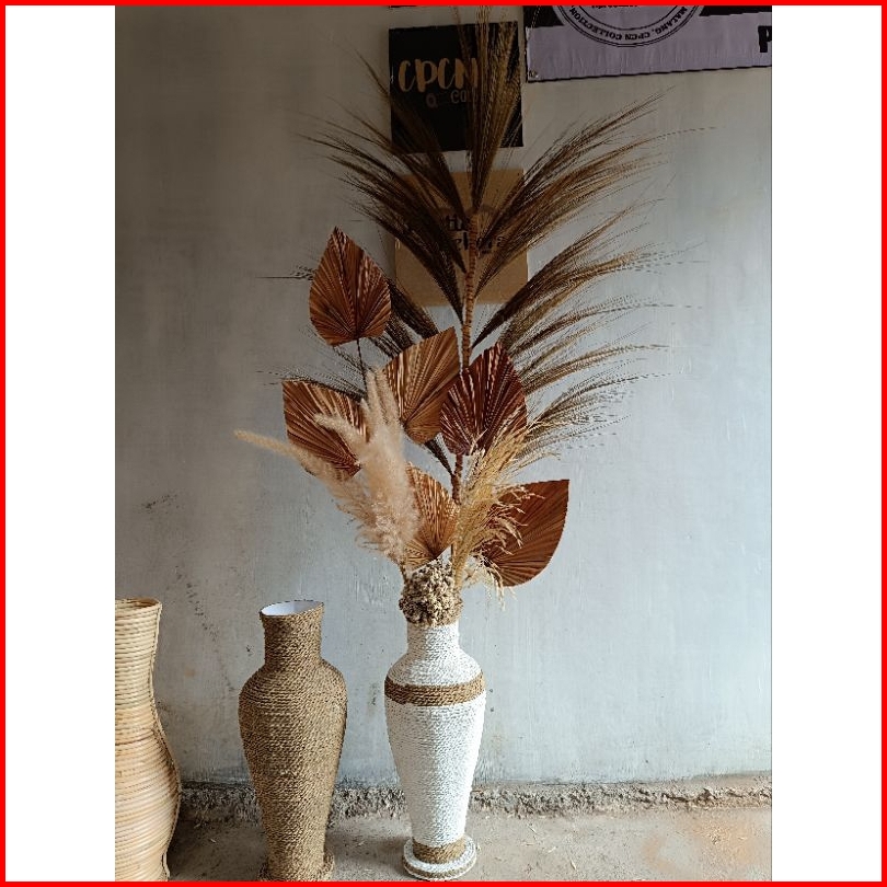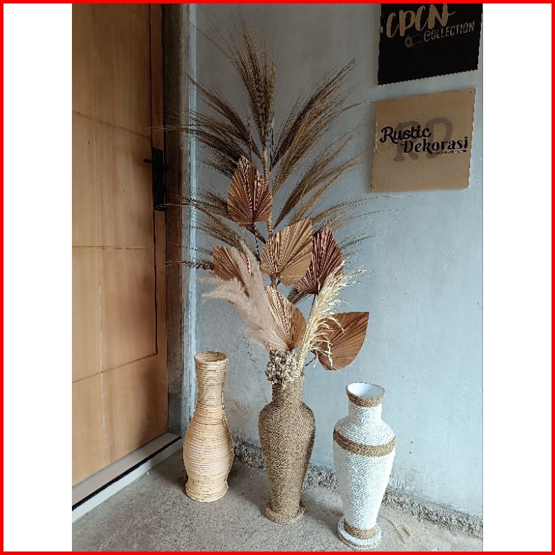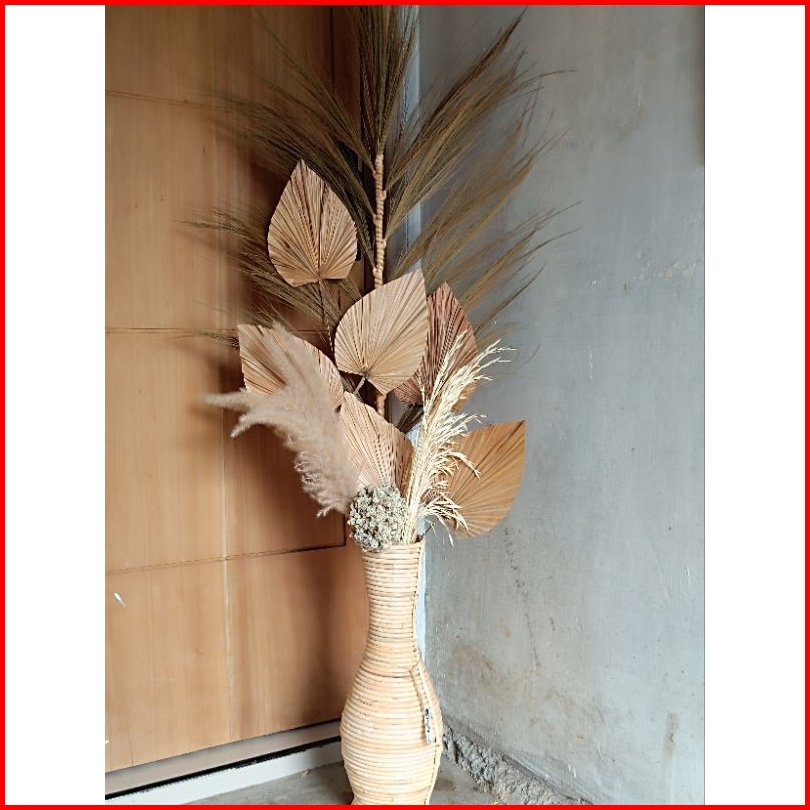 Set Bunga Kering Rustic Dekorasi Ruangan Vas Rotan