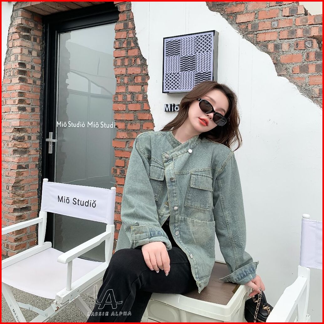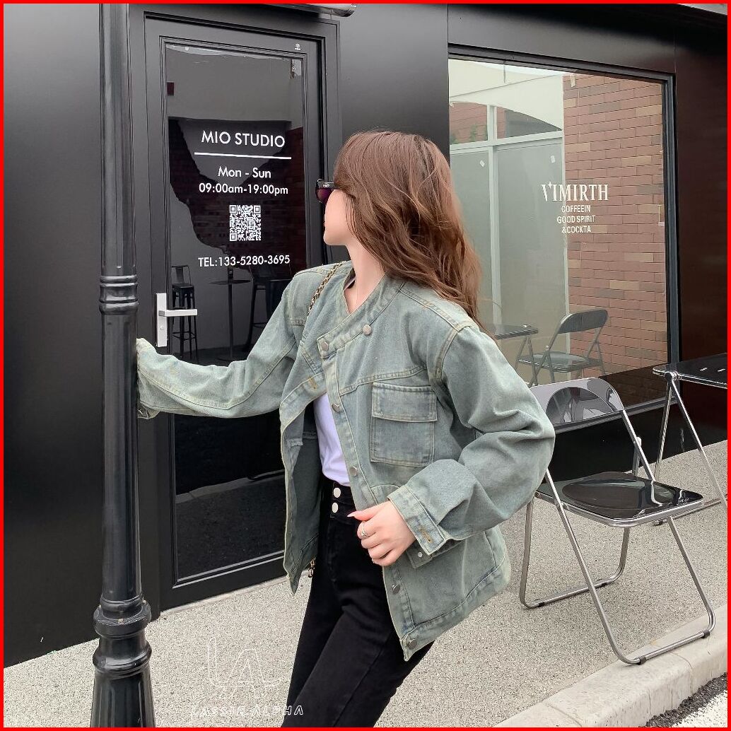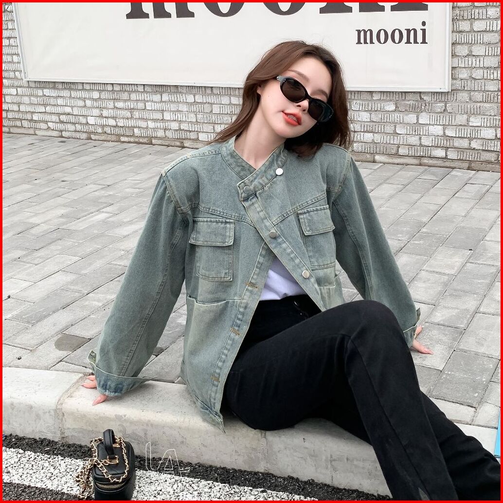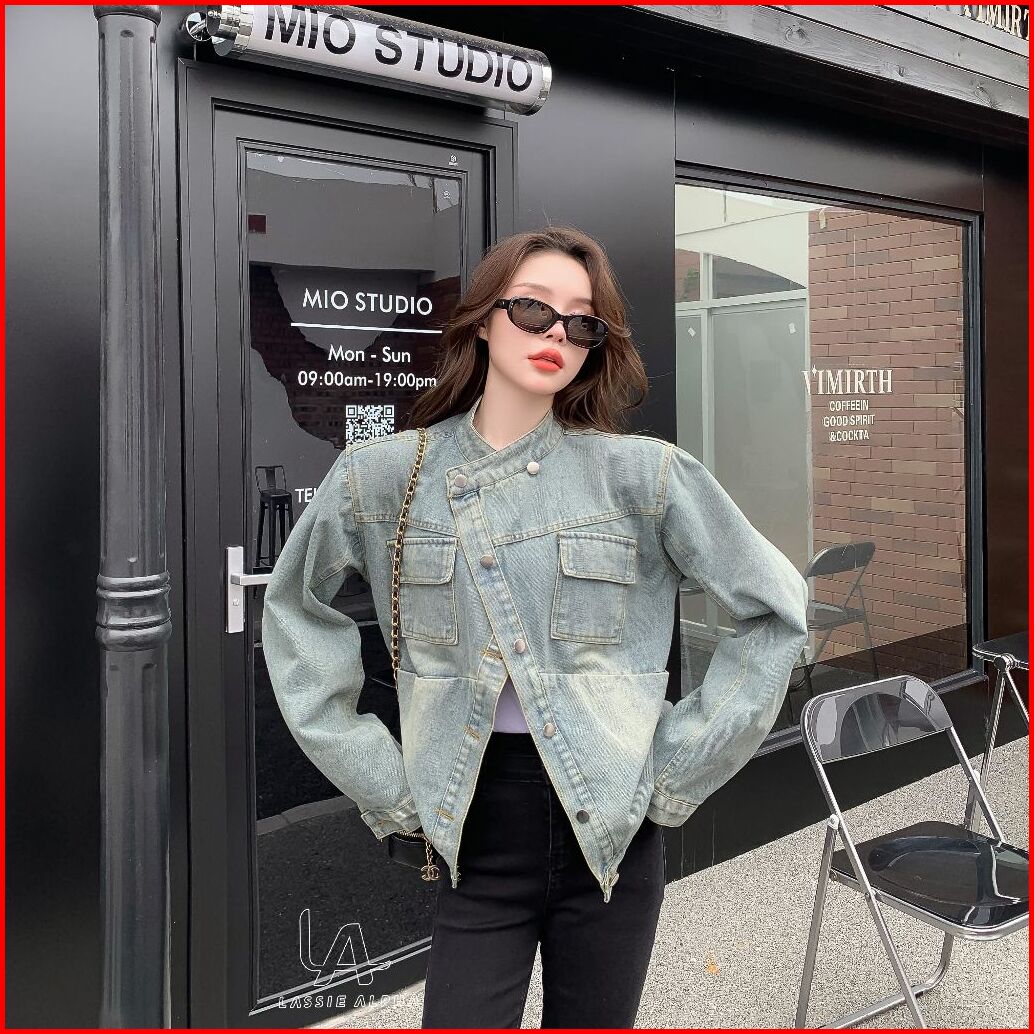 Lassie Alpah Jw04 Jaket Denim Biru Muda Vintage Dengan Kerah Miring Jaket Jeans Wanita Oversize Jaket Outer Korean Style