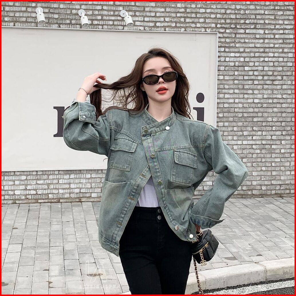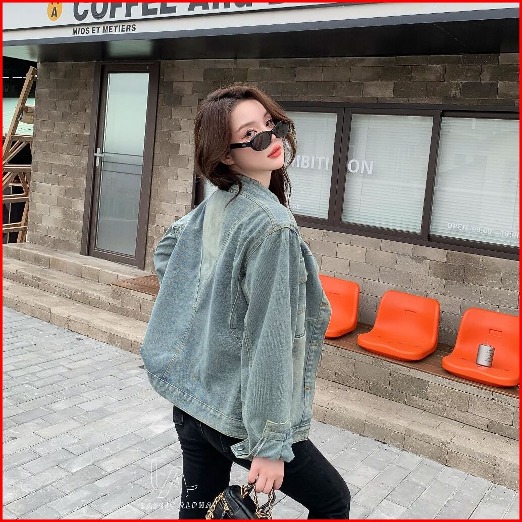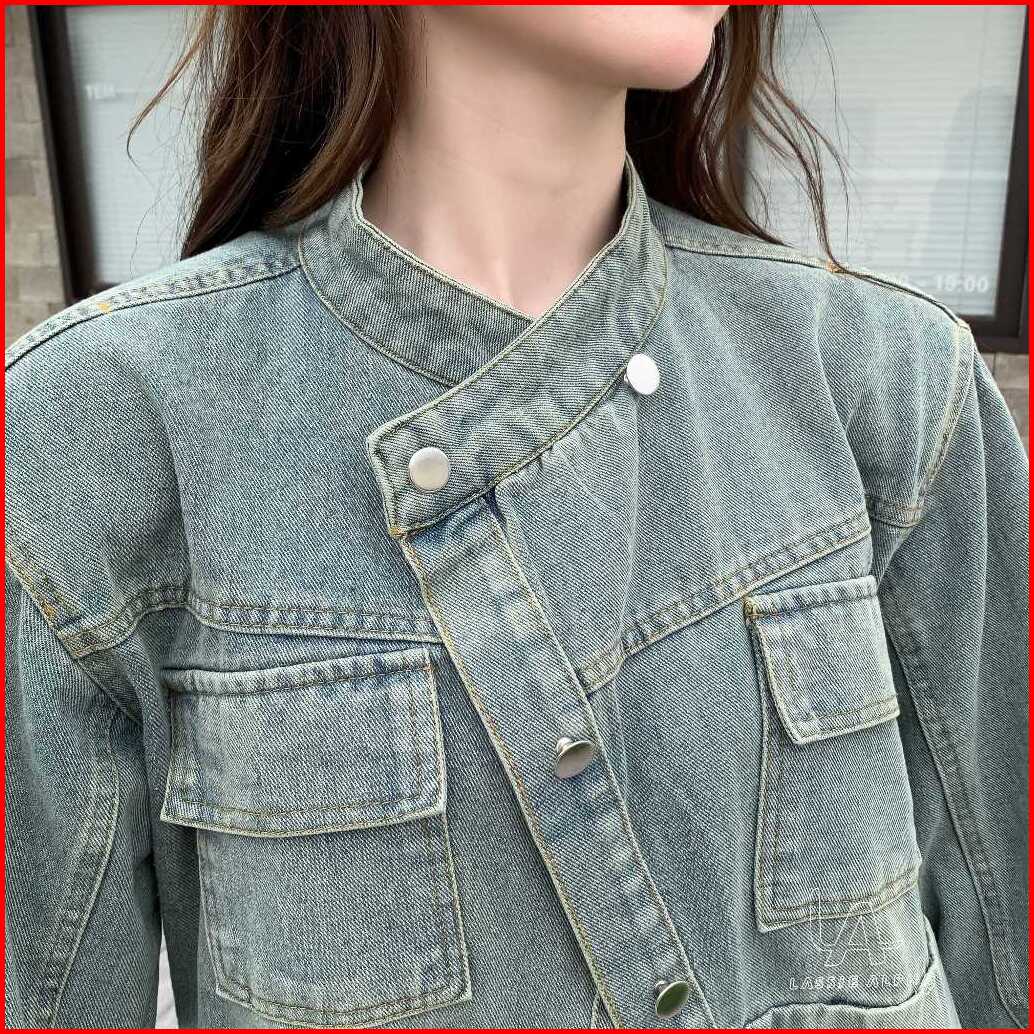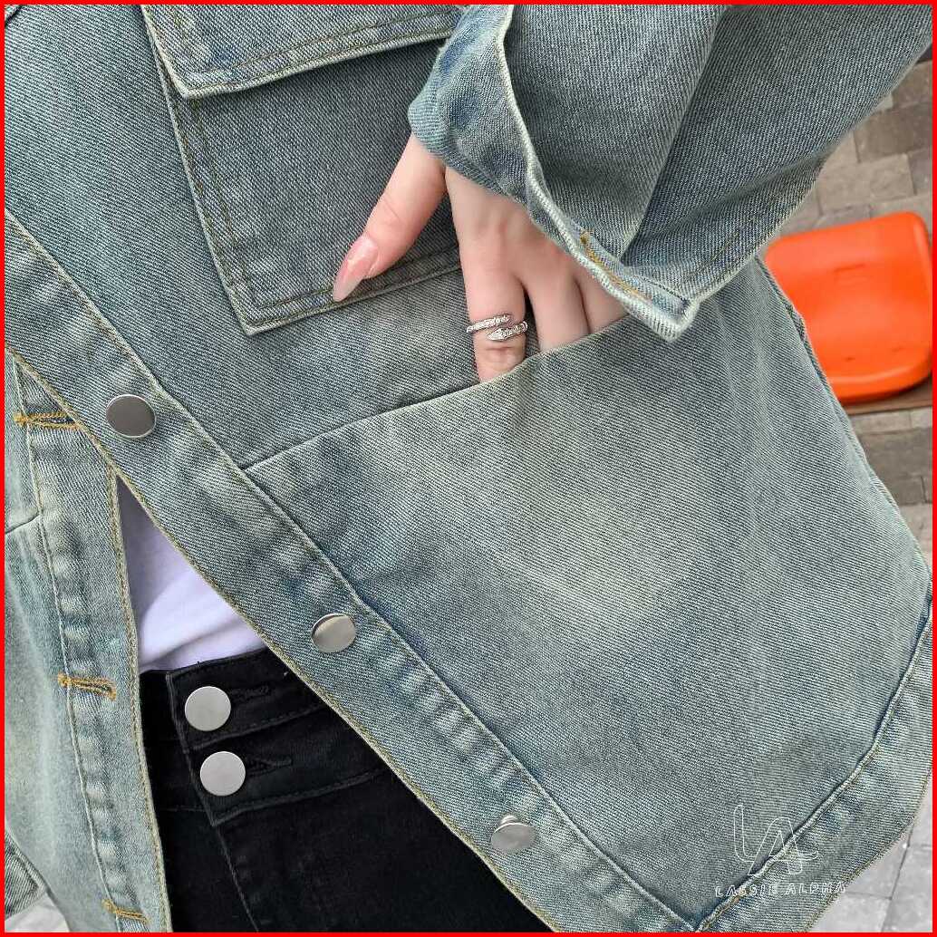 Lassie Alpah Jw04 Jaket Denim Biru Muda Vintage Dengan Kerah Miring Jaket Jeans Wanita Oversize Jaket Outer Korean Style