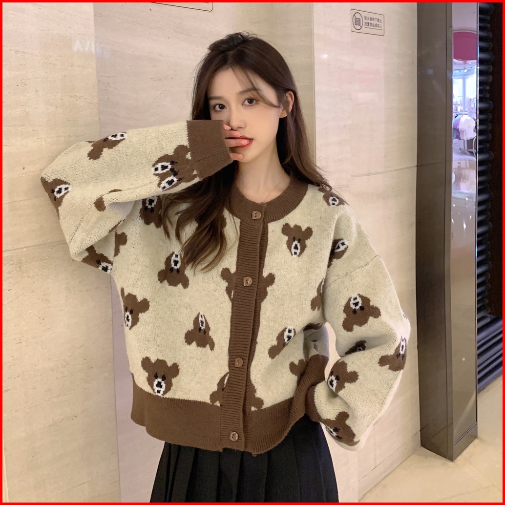 Brownie Bear Cardi Korean Cardigan Sweather Korea Sweater Wanita Bahan Rajut Premium