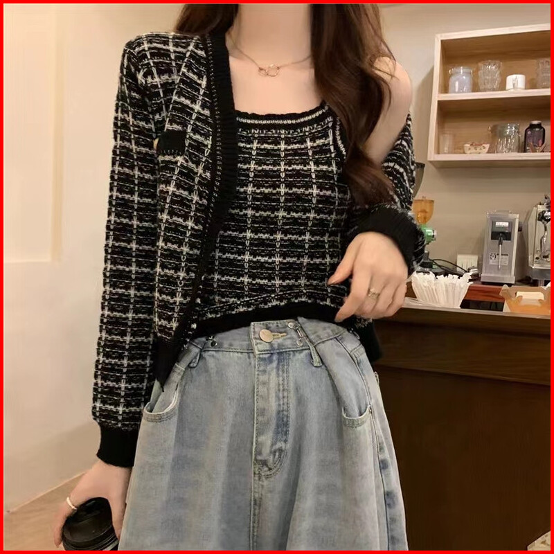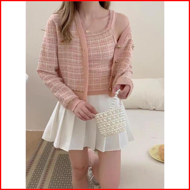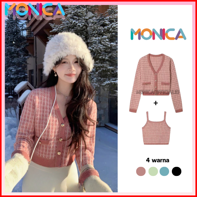 Monica Cardigan Rajut Wanita Knit Top Cardigan Set-cardigan Vest Cardigan Crop Pink Biru Hijau Hitam