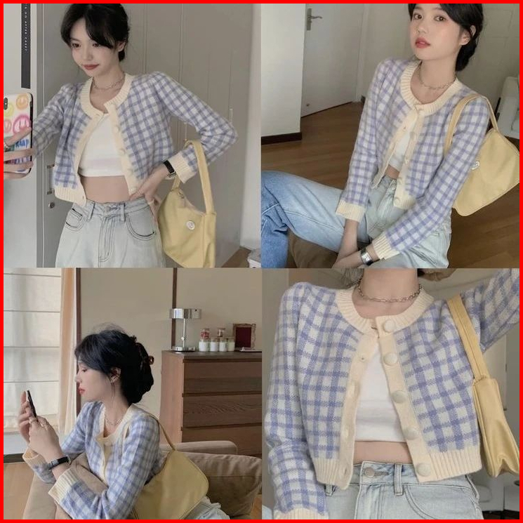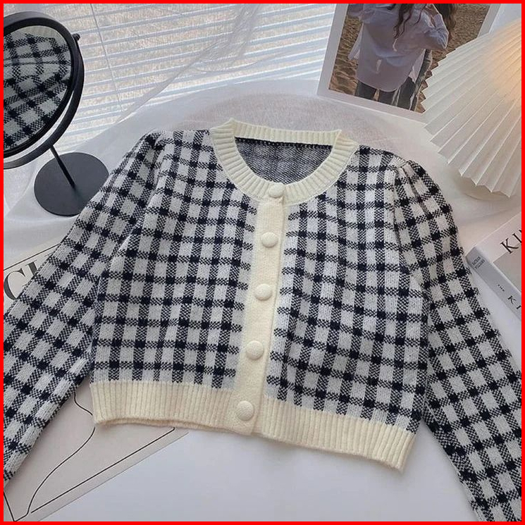 Cardigan Crop Rajut Snowy - Kardigan Knit Korean Style Crop