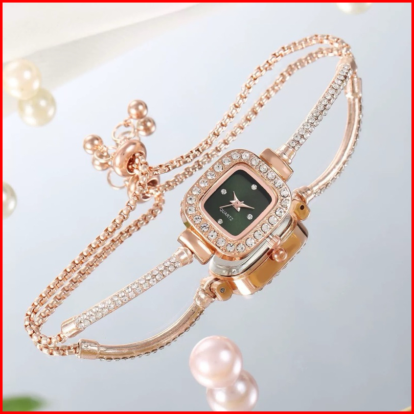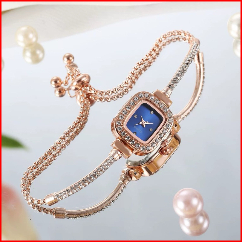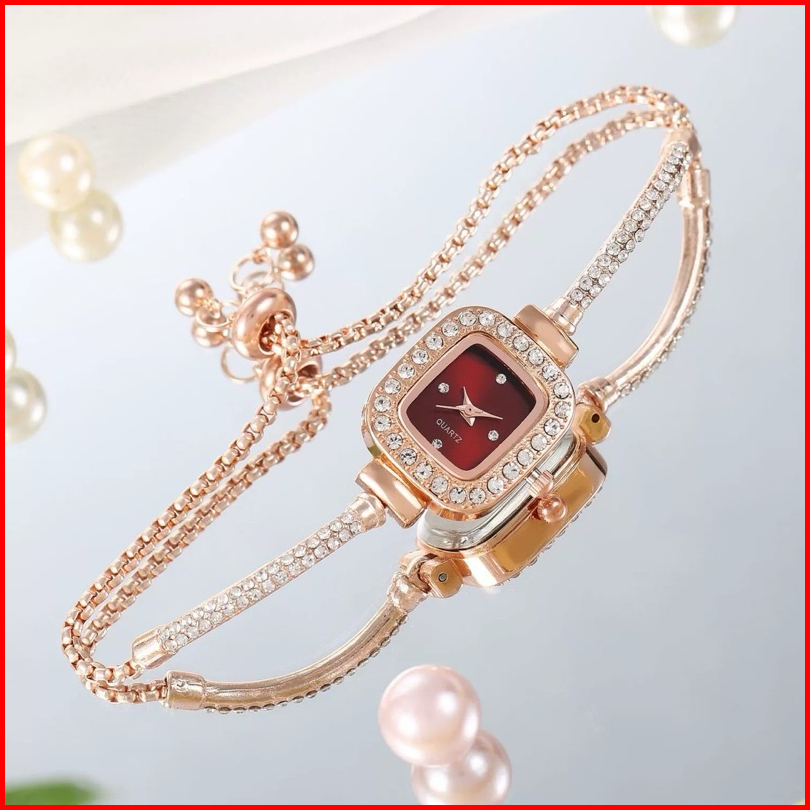 Jam Tangan Serut Mewah Kotak Dengan Baterai Cadangan