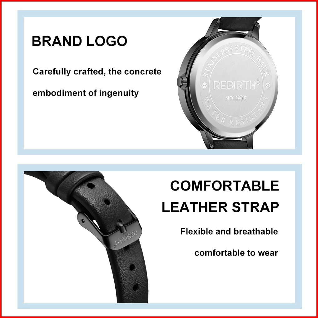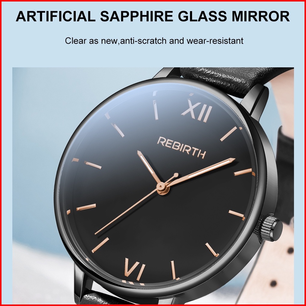 Rebirth Jam Tangan Wanita Anti Air Original Kuarsa Korea Simple Style Tali Kulit Jam Tangan Cewek