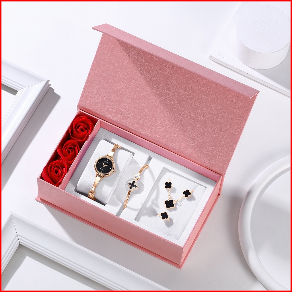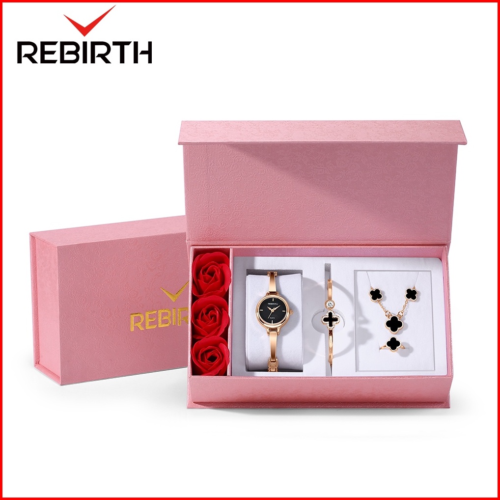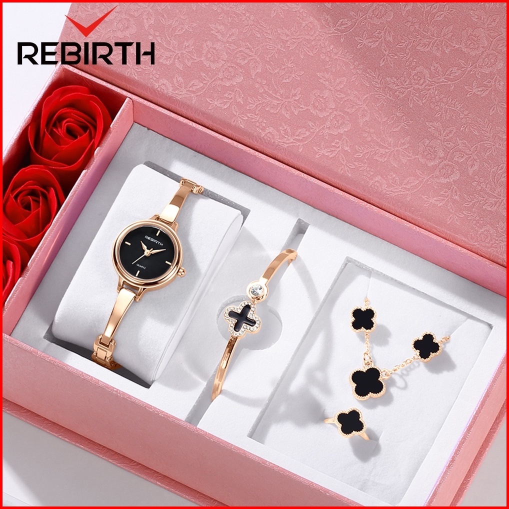 Rebirth Jam Tangan Wanita Original Set Hadiah Indah Semanggi Berdaun Empat Jam Anti Air Gelang Jam Tangan Cewek