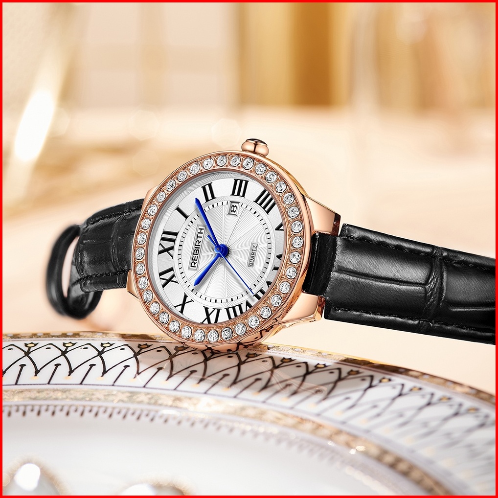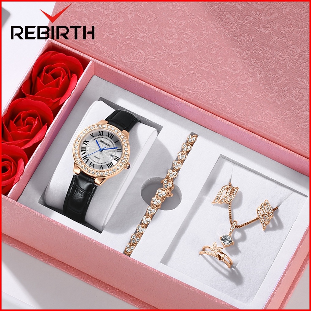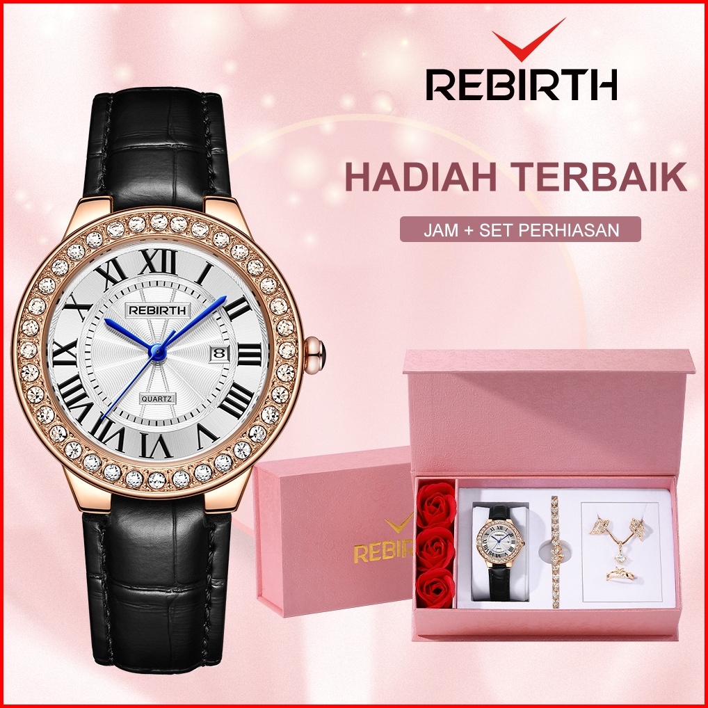 Rebirth Jam Tangan Wanita Original Set Sebuah Seri Hadiah Indah Aksesoris Set Jam Tangan Cewek Anti Air Kalung Anting Ge