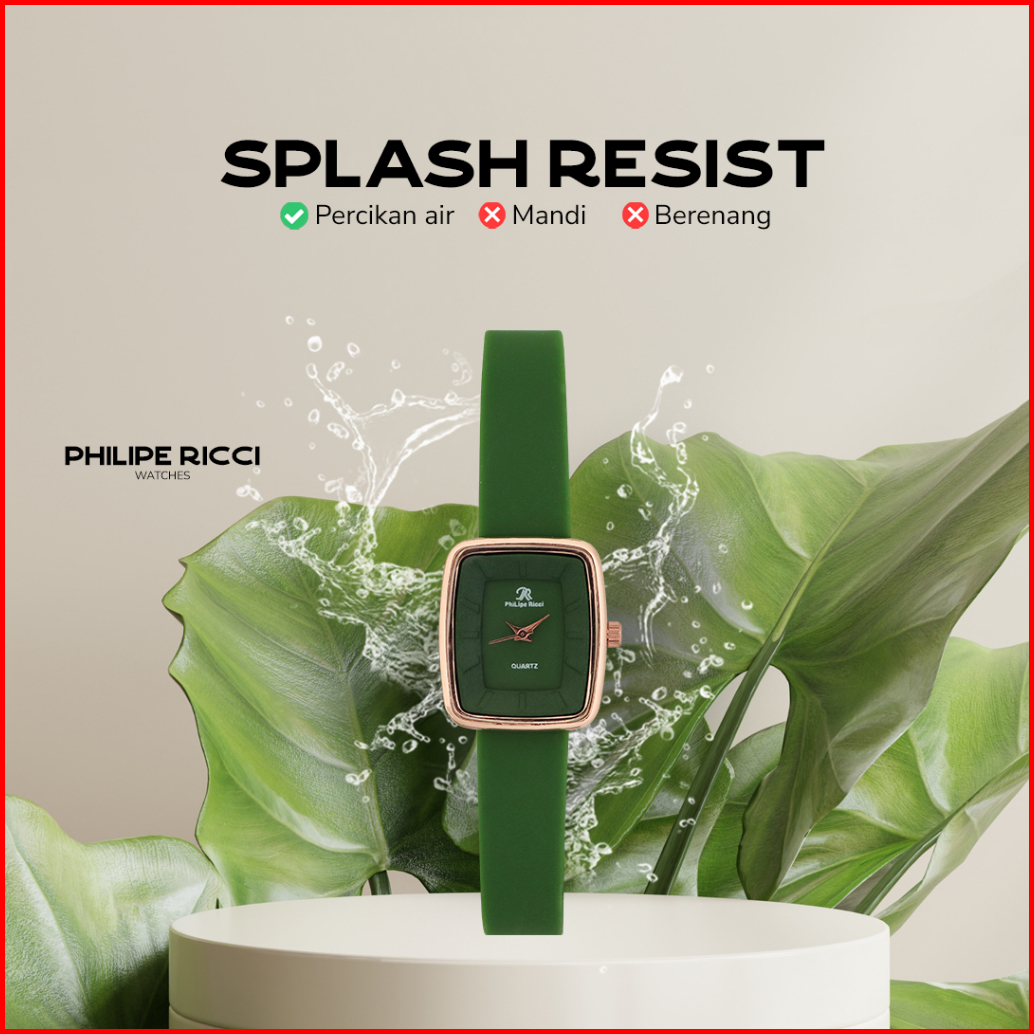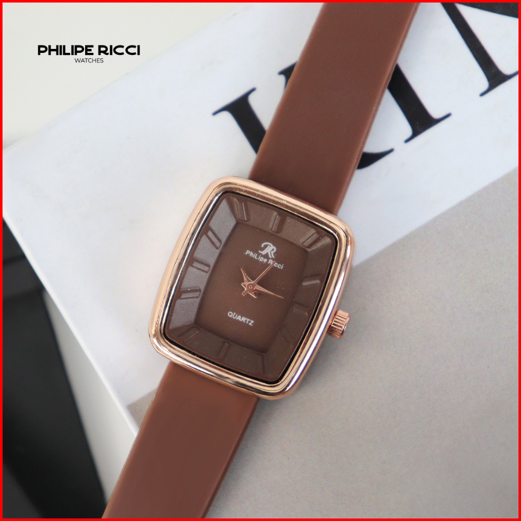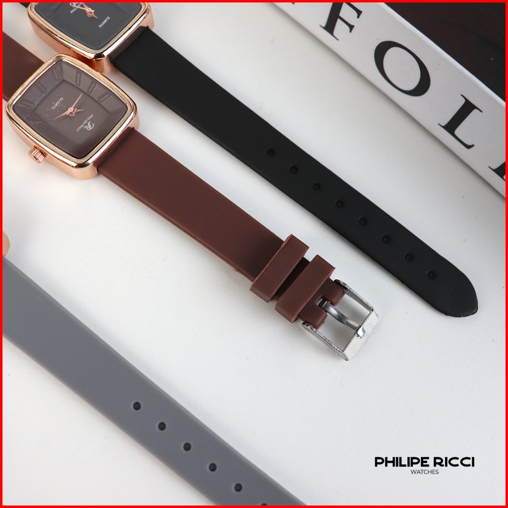 Philipe Ricci Jam Tangan Wanita Kecil Cewek Kotak Mini Strap Rubber Diameter Desain Trendy 8896w Woman Watches Tali Kare