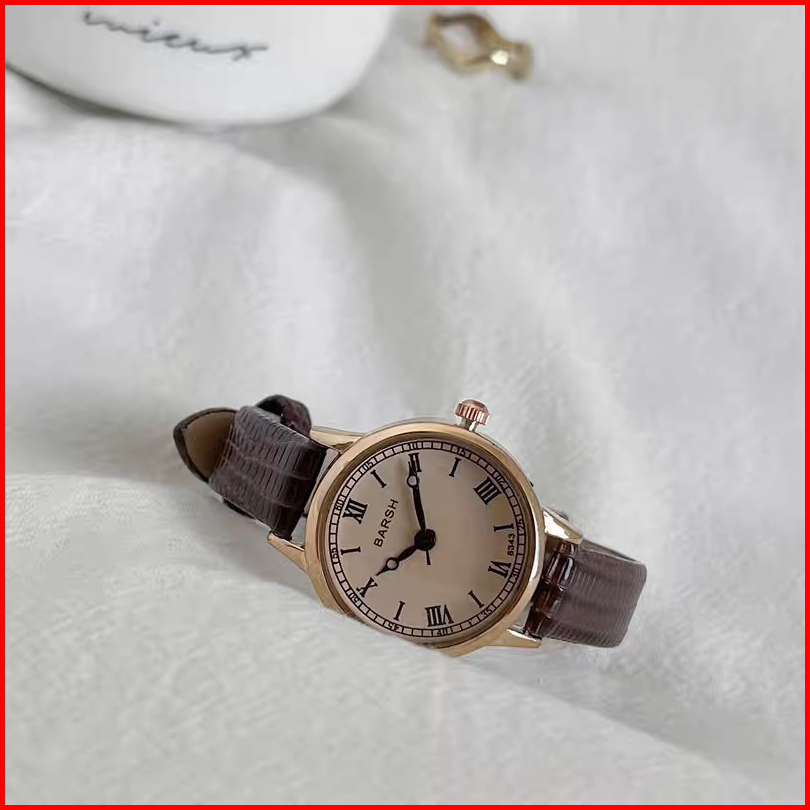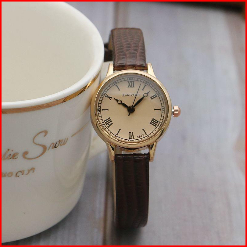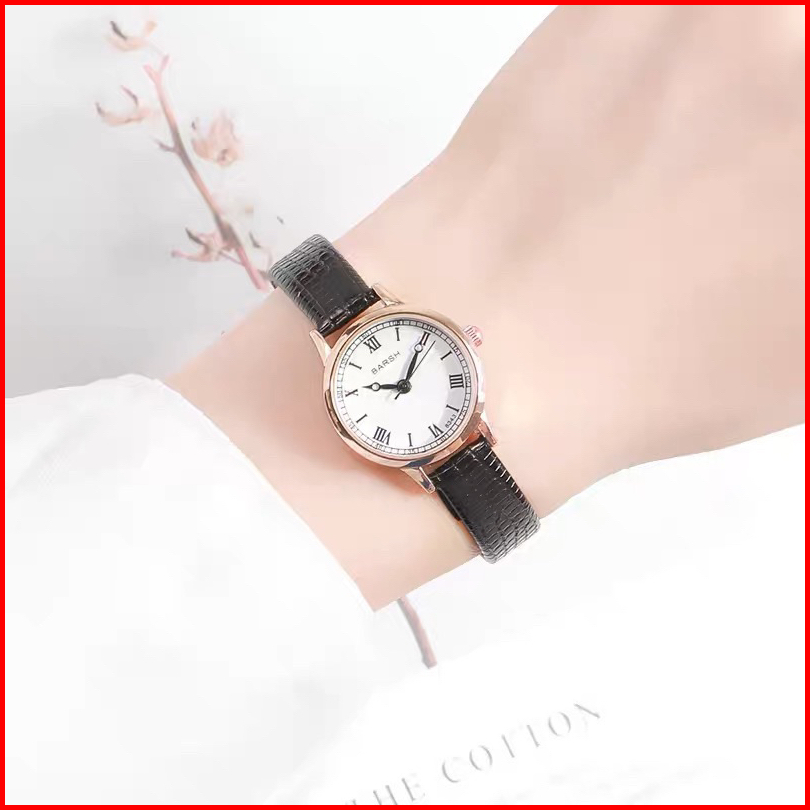 Jam Tangan Wanita Tali Kulit Analog Bulat Barsh Jam Cewek Import W031