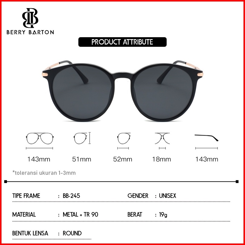 Berrybarton - Kacamata Hitam Polarized Bulat Metal Sunglasses Anti Uv400 245
