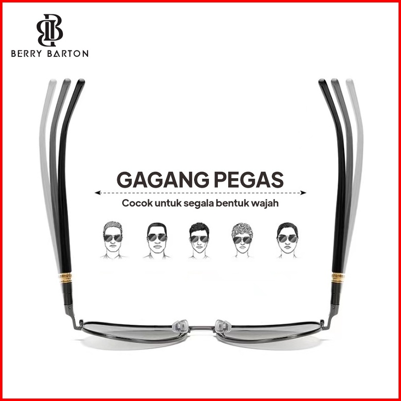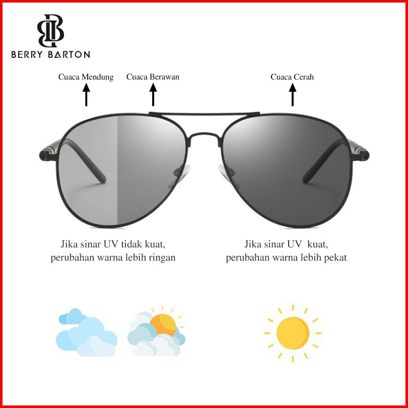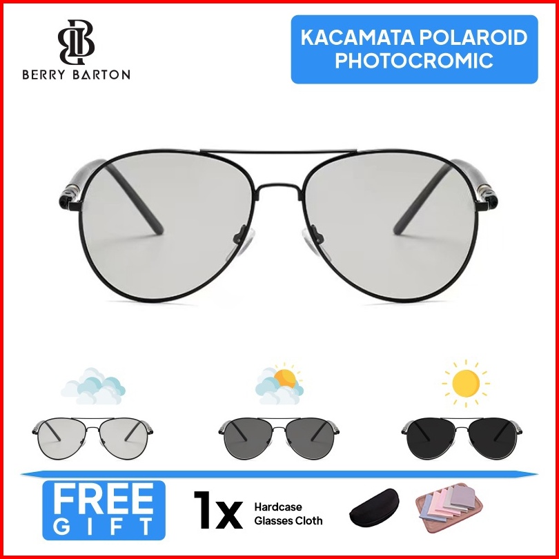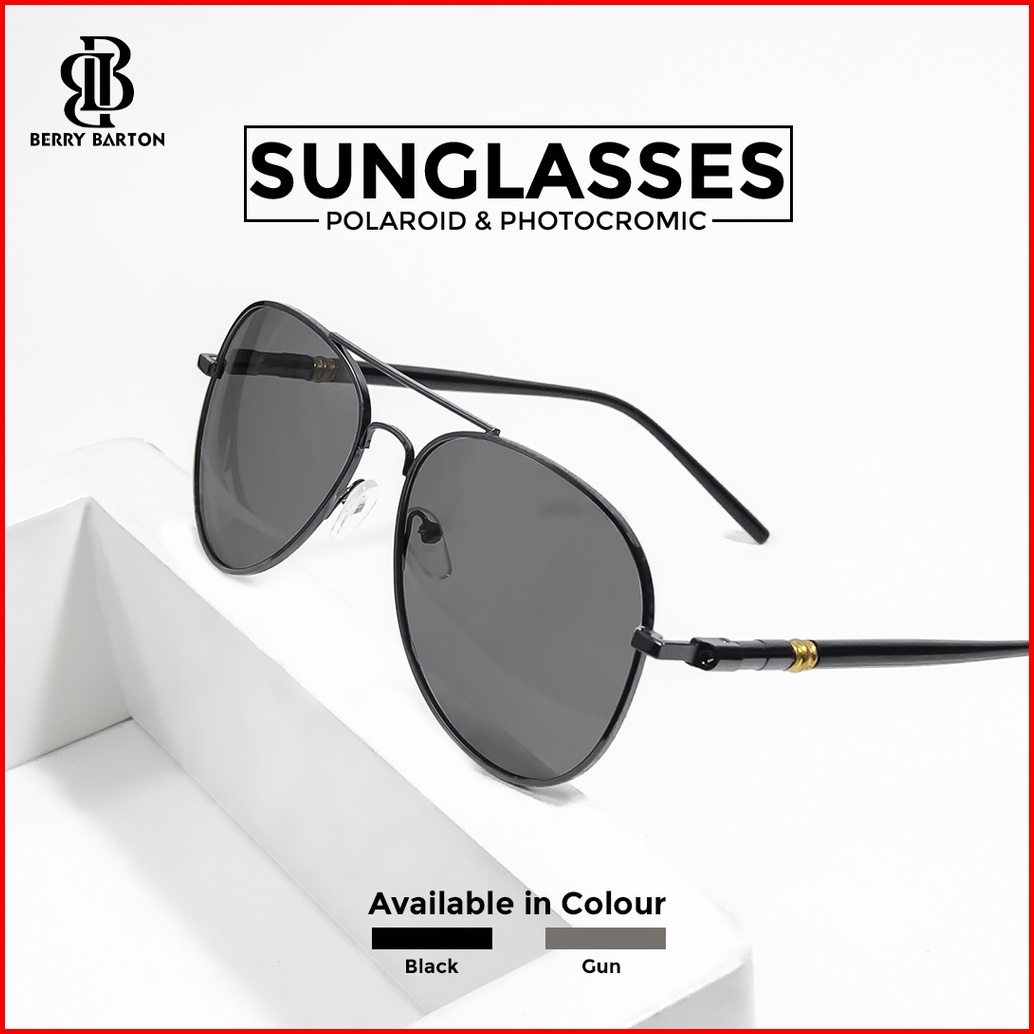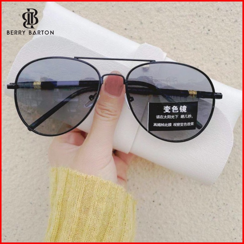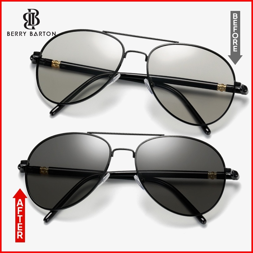 Berrybarton - 209 Terpolarisasi Kacamata Sunglasses Wanita Pria Aviator Metal Frame Photocromic