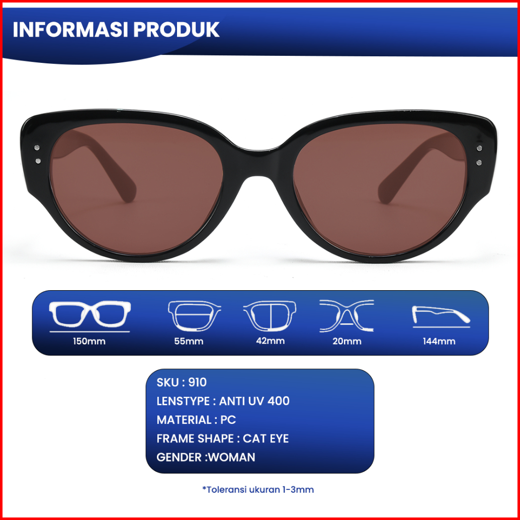 Iooi Eyewear - Kacamata Hitam Fashion Cat Eye Anti Uv400 Outdoor Sunglasses Plastik Pc Pria Wanita 910