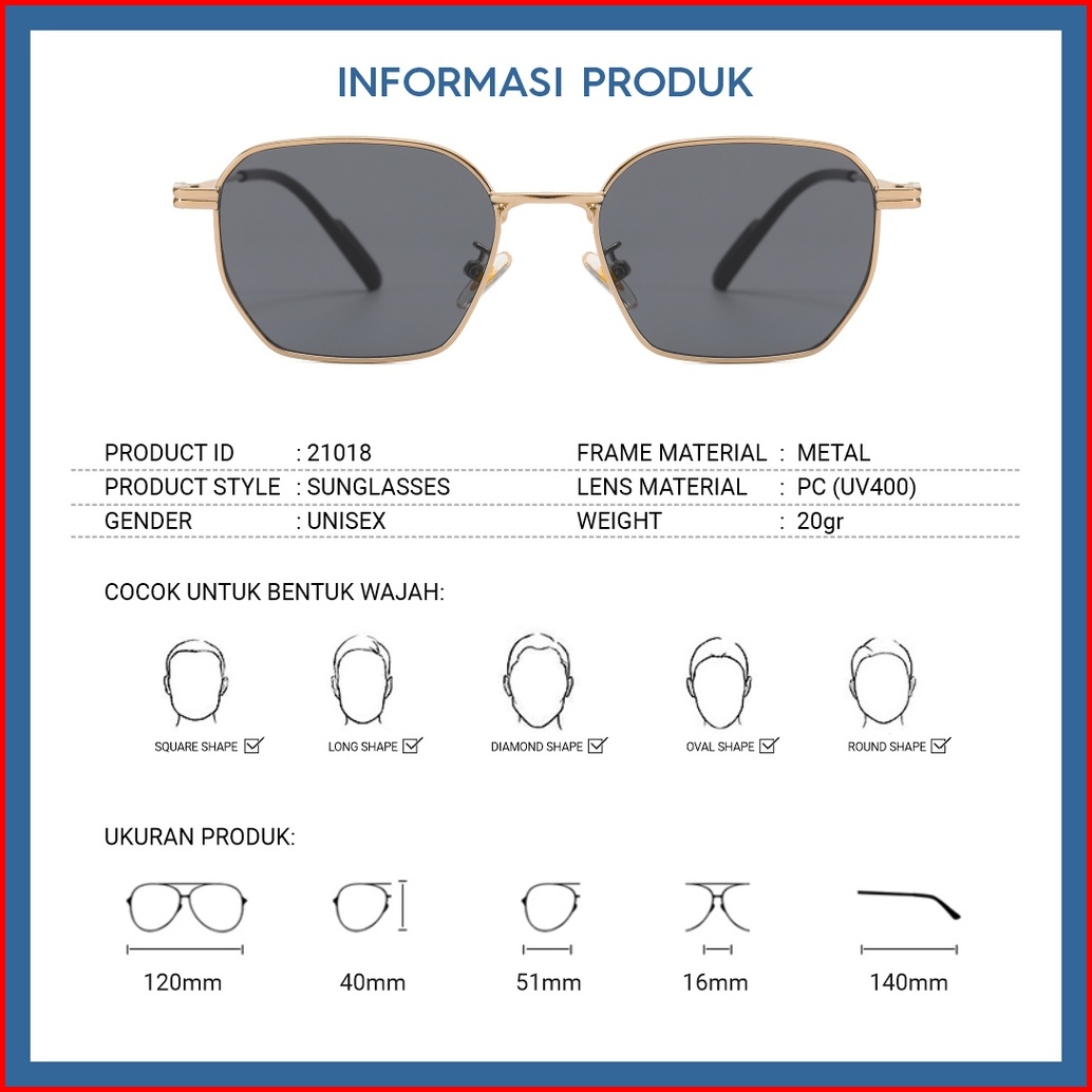 Iooi Eyewear - Kacamata Hitam Modern Geometric Fashion Vintage Sunglasses Uv400 21018