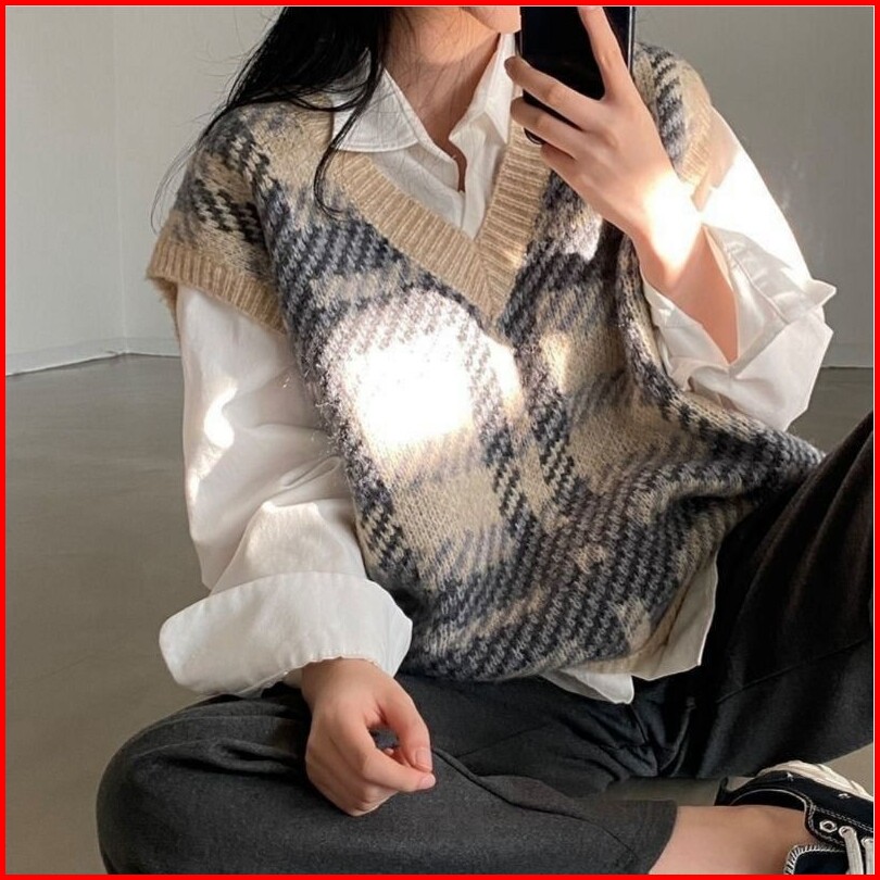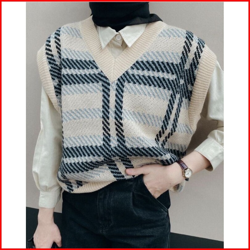 Que Premium Woman Winter Autumn Knit Vest Outerwear Knitwear Rompi Rajut Wanita Musim Dingin