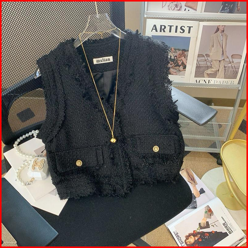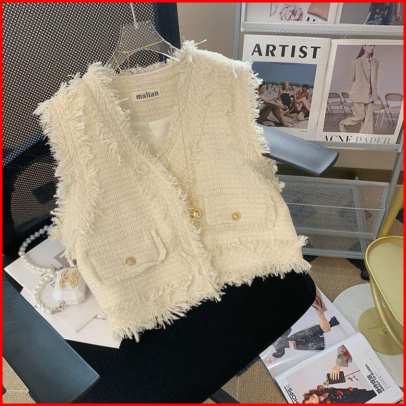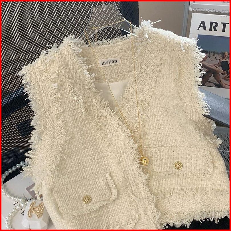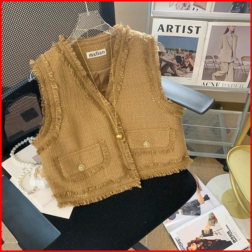 Theone Casual Tweed Vest Luaran Blazer Rompi Tweed