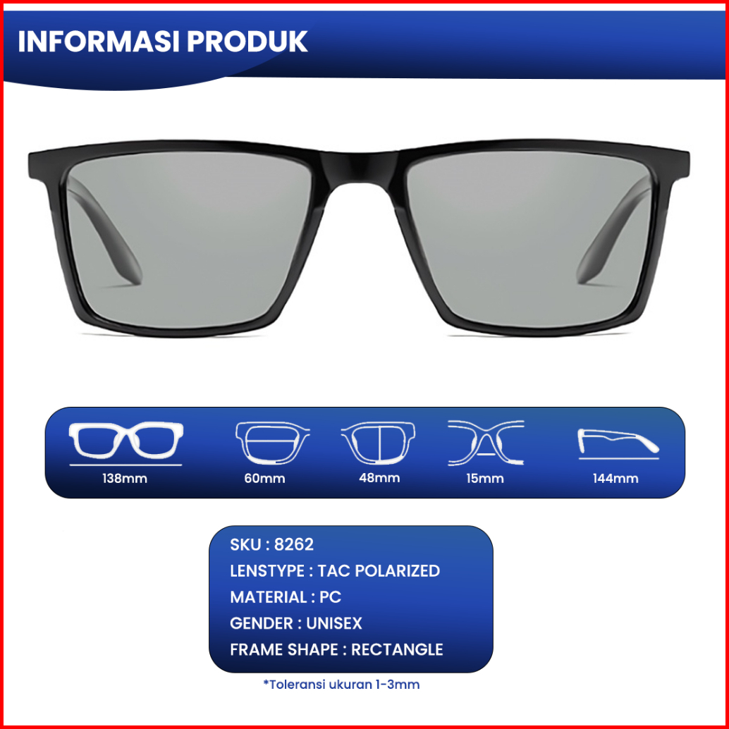 Iooi Eyewear - Kacamata Hitam Sunglasses Kotak Polarized Pria Wanita 8262