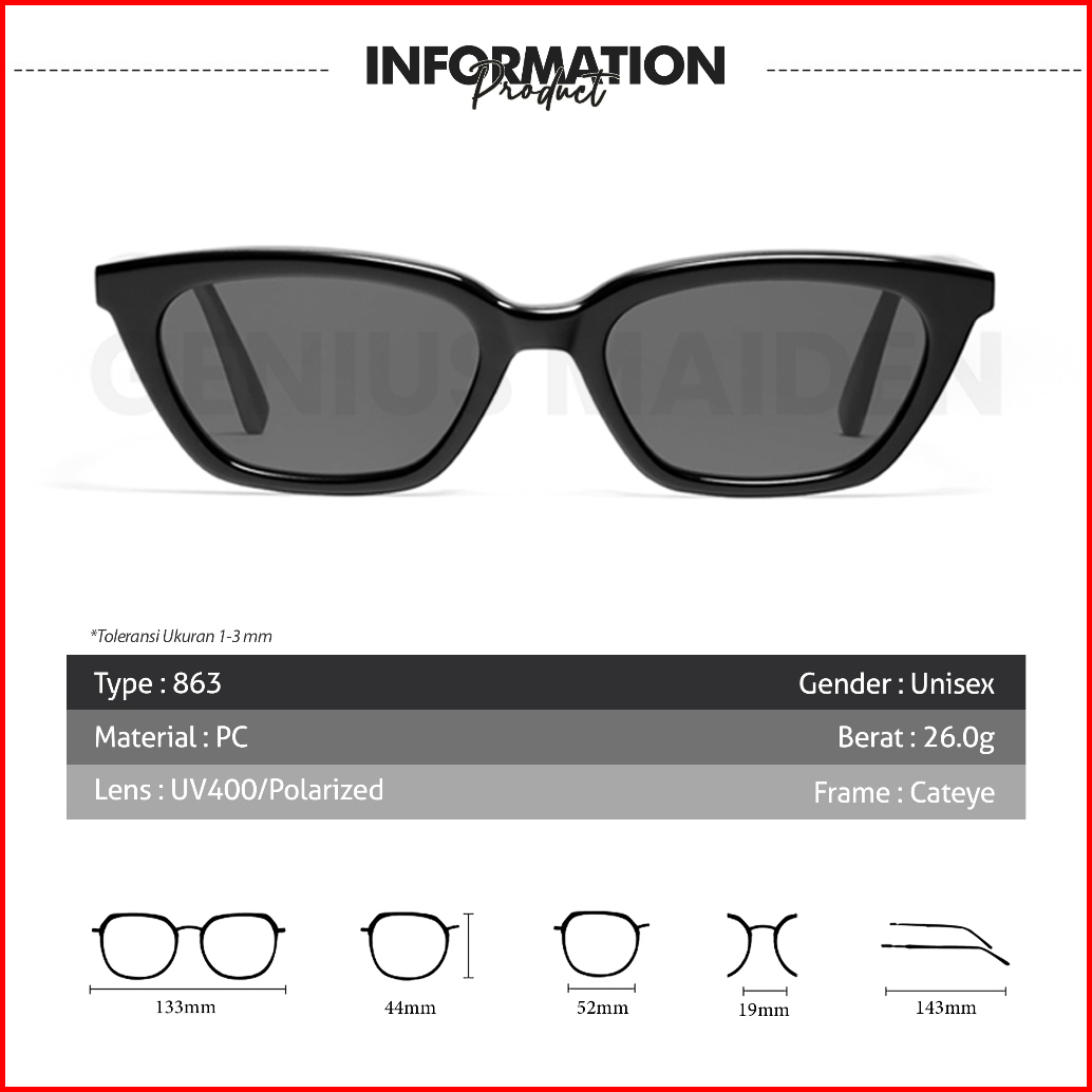 Genius Maiden Kacamata Hitam Sunglasses Fashion Anti Uv 400 Cat Eye Pria Wanita Stylish 863