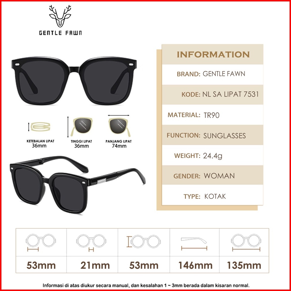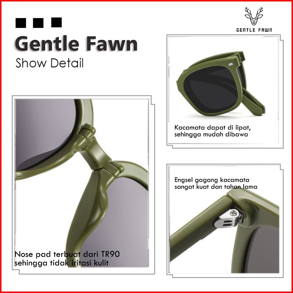 Gentle Fawn Kacamata Sunglasses Hitam Polarized Anti Uv Sinar Matahari Foldable Bahan Tr90 Style Kotak Wanita Bisa Di Li