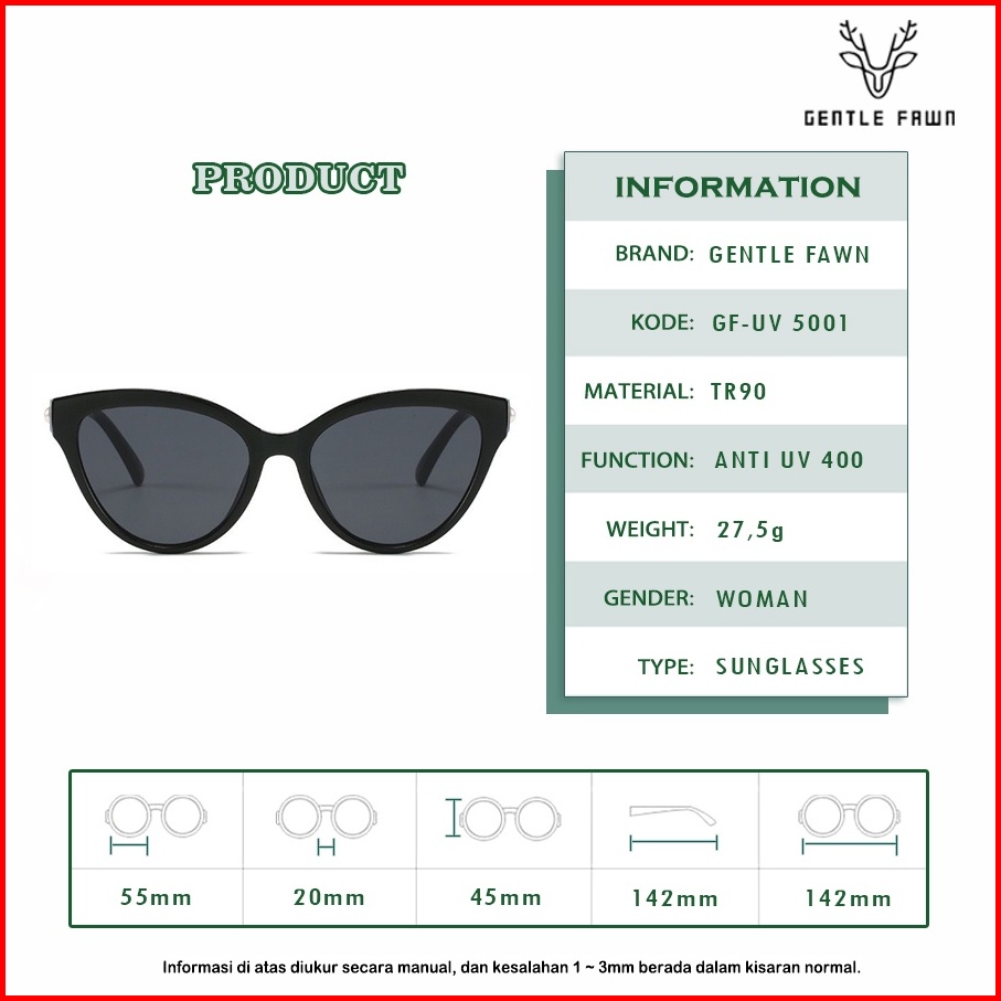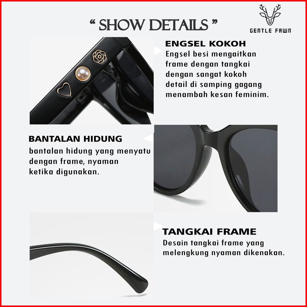 Gentle Fawn Kacamata Hitam Sunglasses Anti Uv Protection Tr90 Bentuk Cat Eye Style Camellia Fashion Wanita Simple Dan Tr