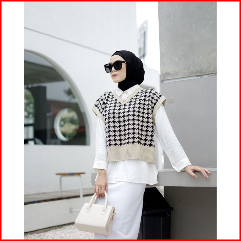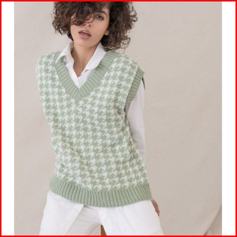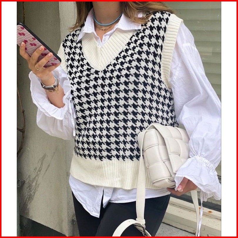 Realpict Houndsthooth Vest Knit By Zr Vest Import Korea Korea Style Premium R.5 S-2