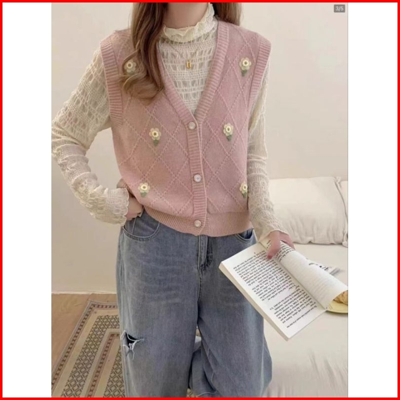 Lamourcloset - Dahye Knit Vest Sunflower Korean Rajut