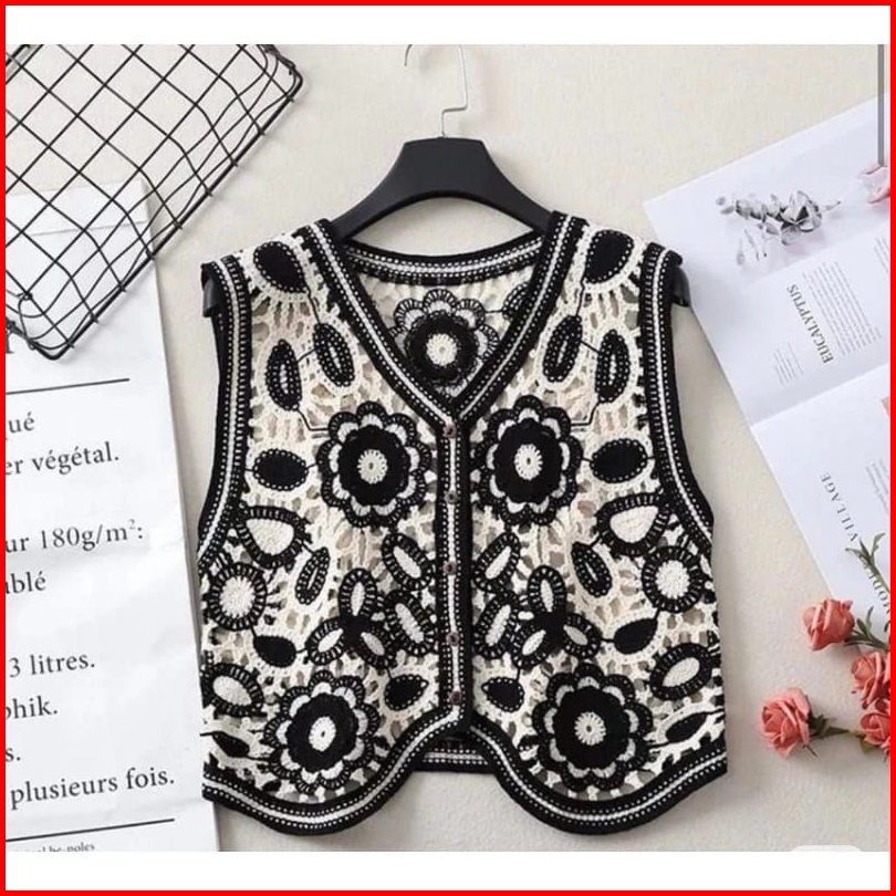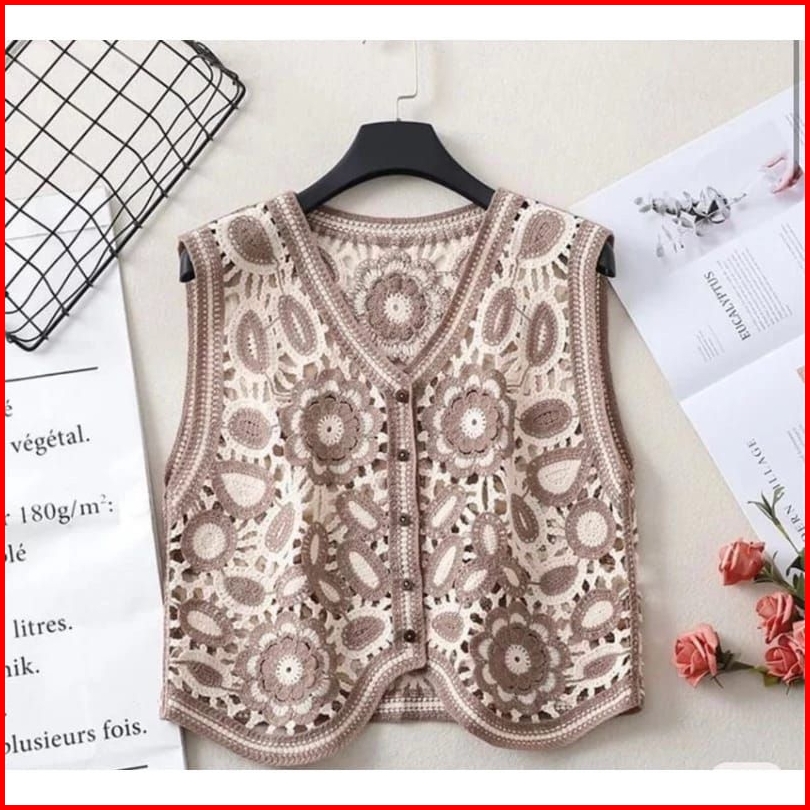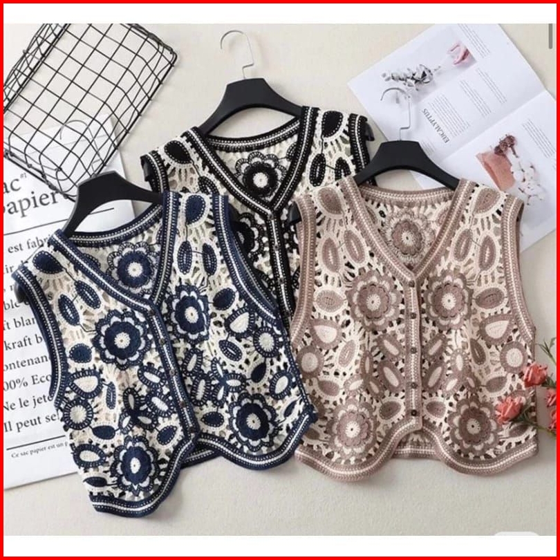 Atasan Blouse Kemeja Vest Top Kombinasi Rajut Matahari Korean Style Premium Ld 90-205cm Pj 50-55vm