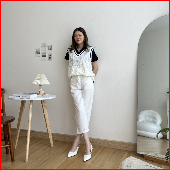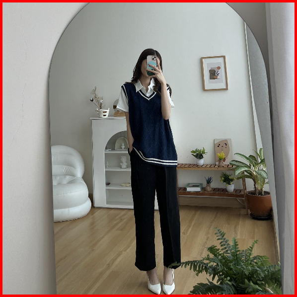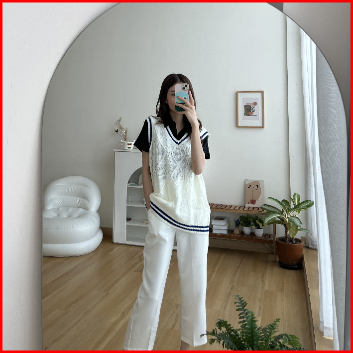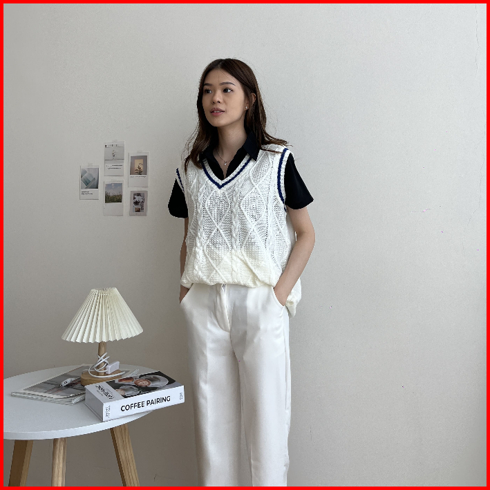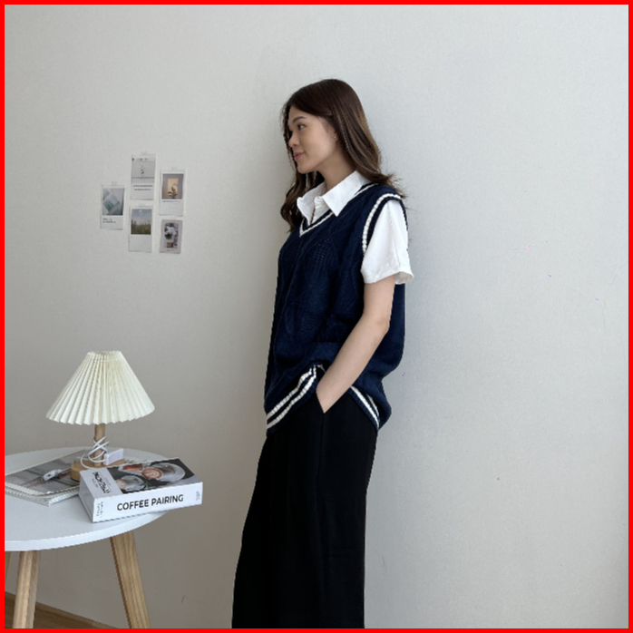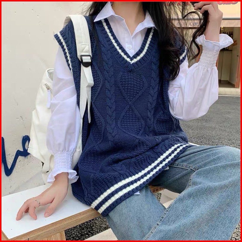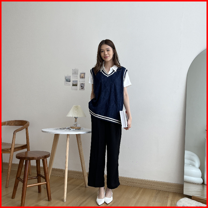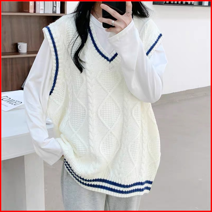 Kaorithelabel Edrea Sweater Vest Oversize Rompi Rajut Premium - Atasan List - Blouse Stripe Wanita - Outer Kerah V-neck