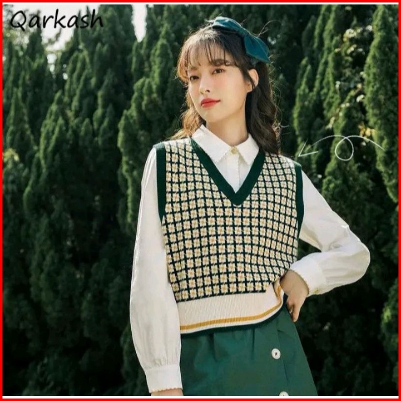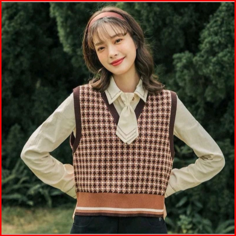 Eoni Vest Knite Rajut Korean Atasan Rompi Wanita