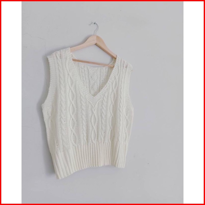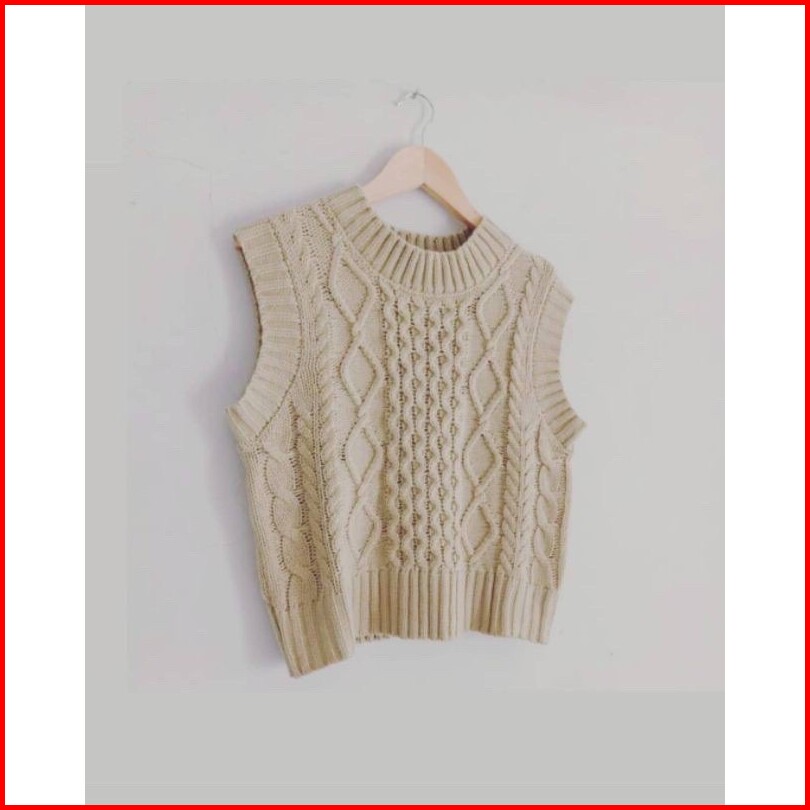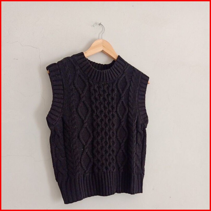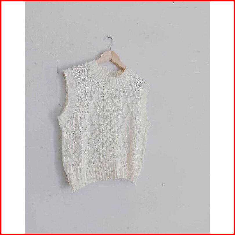 Rini Korean Sweater Vest Rompi Rajut Korea Kepang Plain Knit Vest