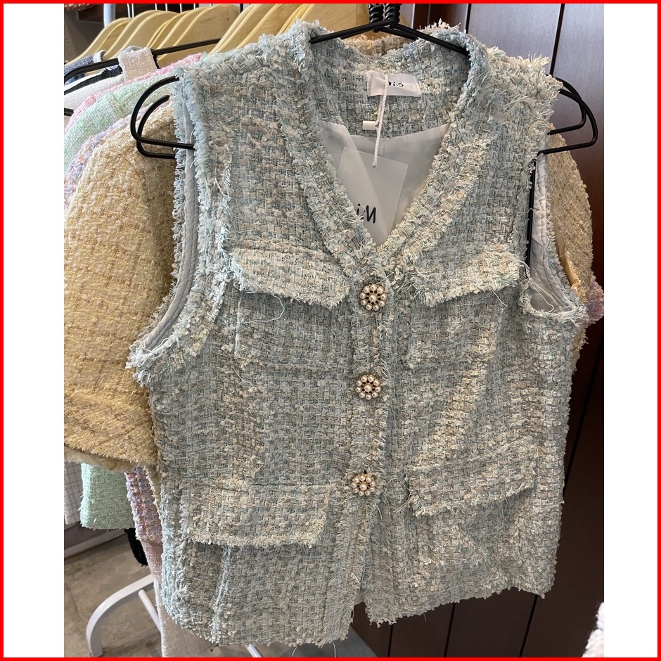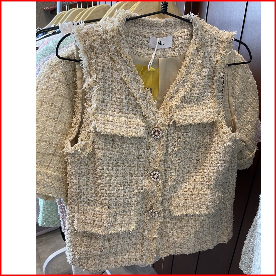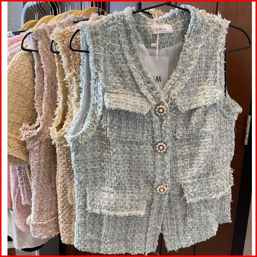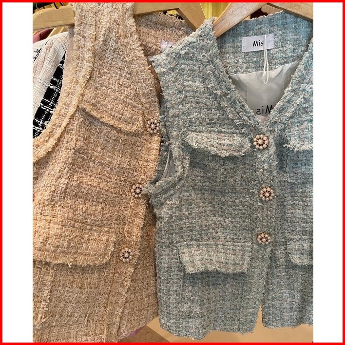 Ready Stock Ld 86 Julie Yellow Khaki Tweed Vest Korea Premium Fairlady Id