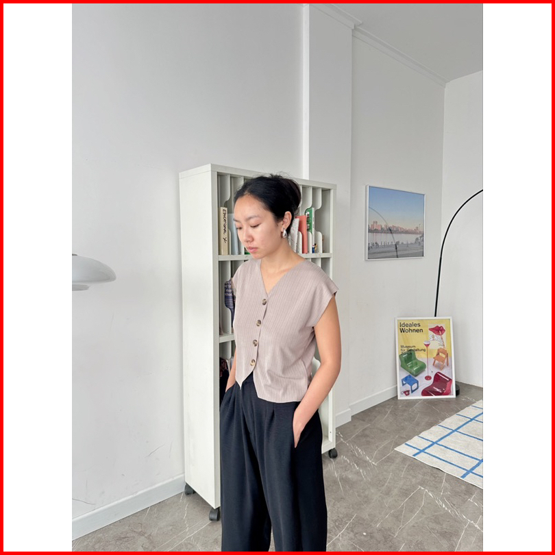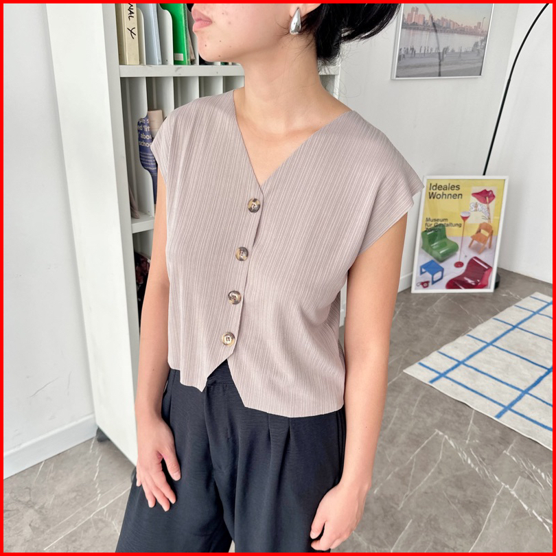 Vest Rompi Wanita Unfinished Cut - V Neck Halter - Sleeveless Top