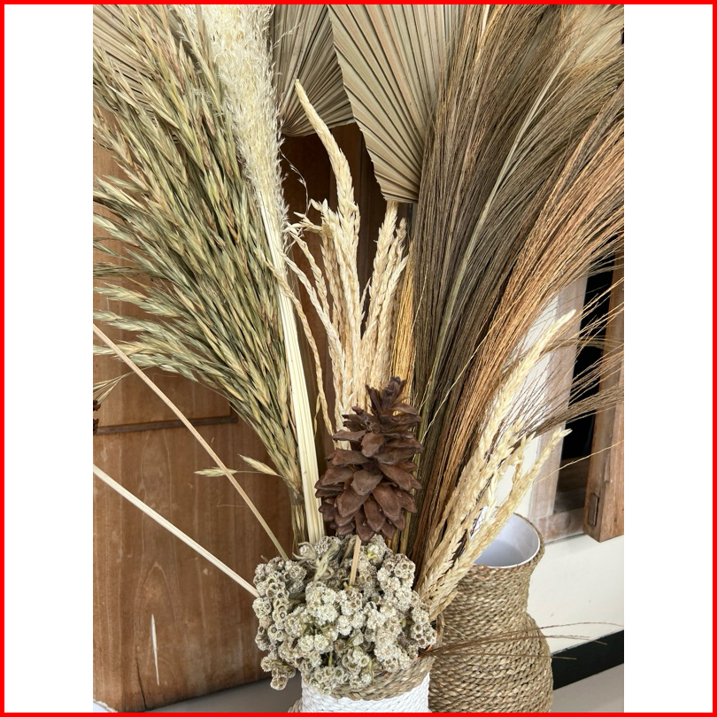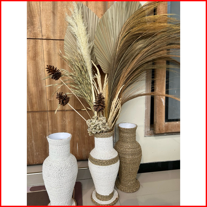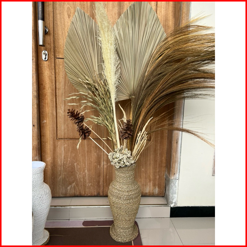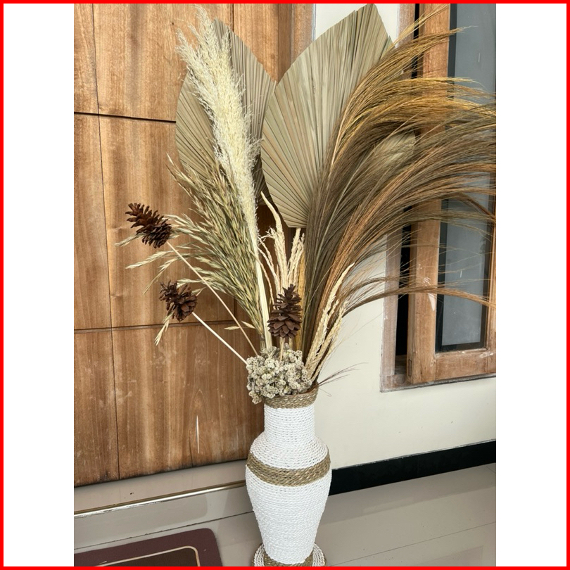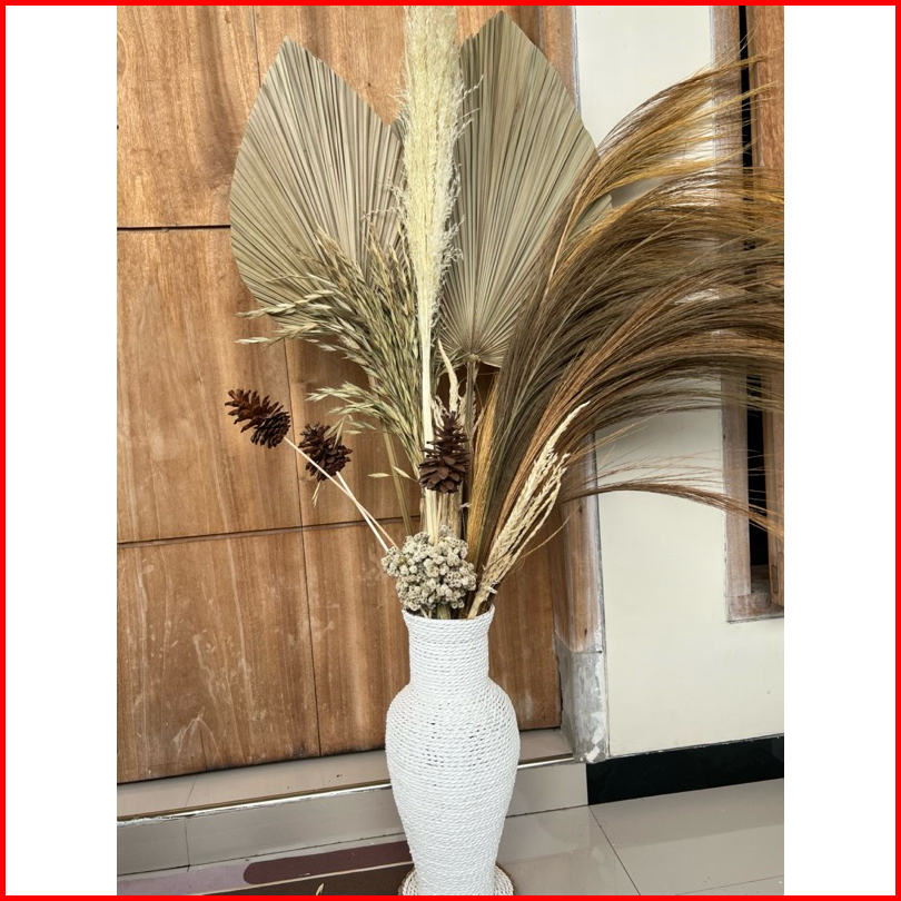 Promo Murah Paket Bunga Kering Vas Guci T40cm Daun Dekorasi Ruangan